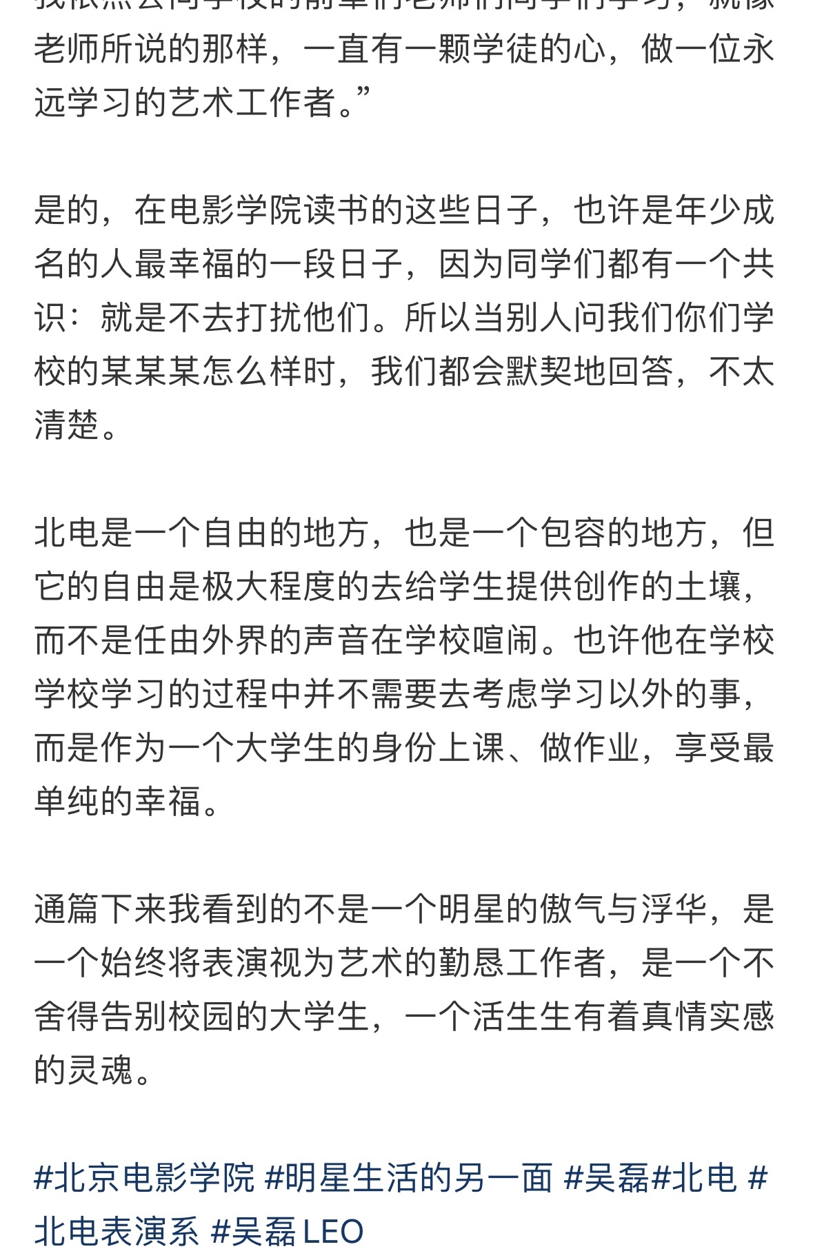 是年轻影人,是青年演员,是永远对自己热爱的表演有着原动力和热忱的吴磊老师🥹🫶🏻
