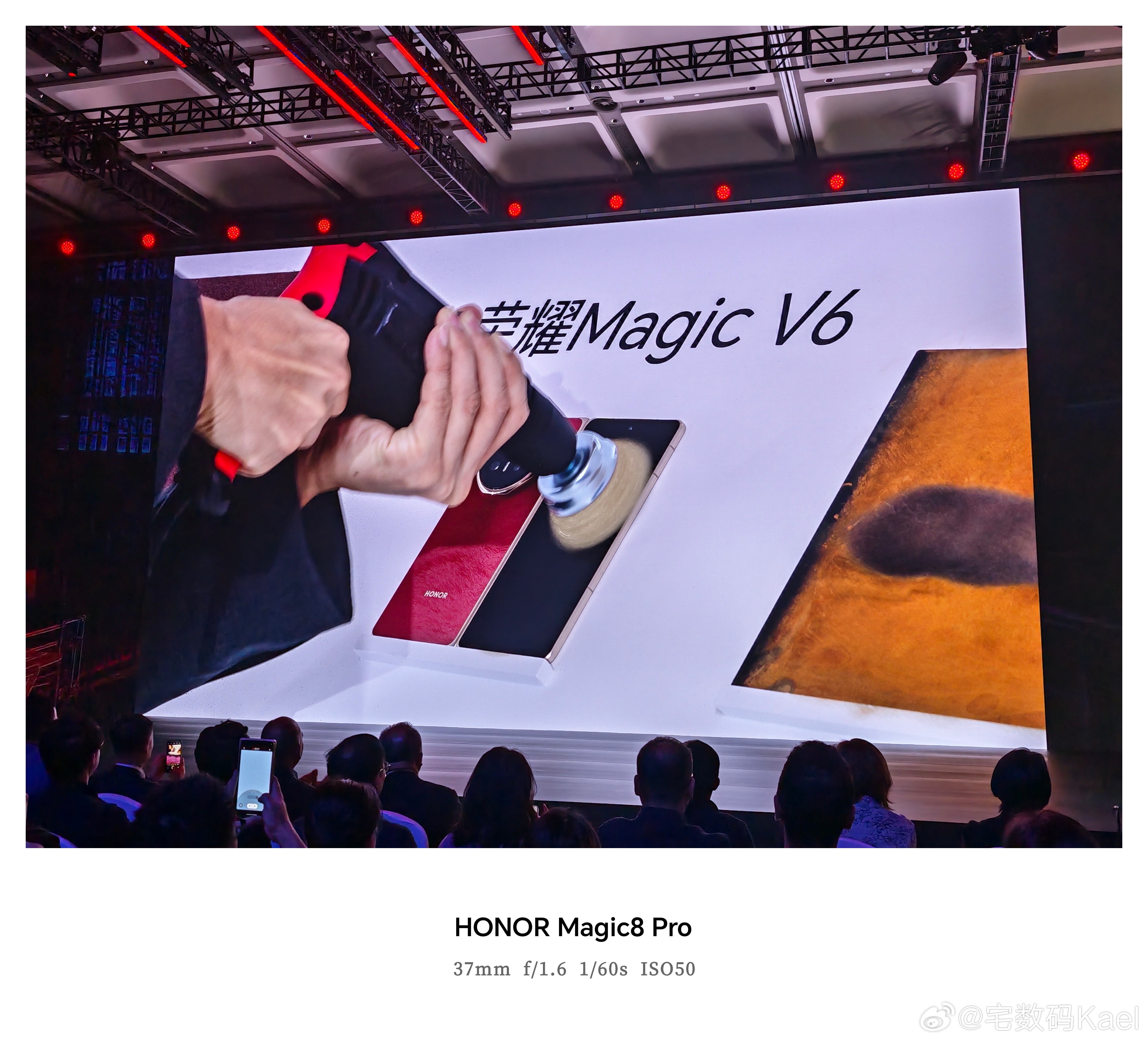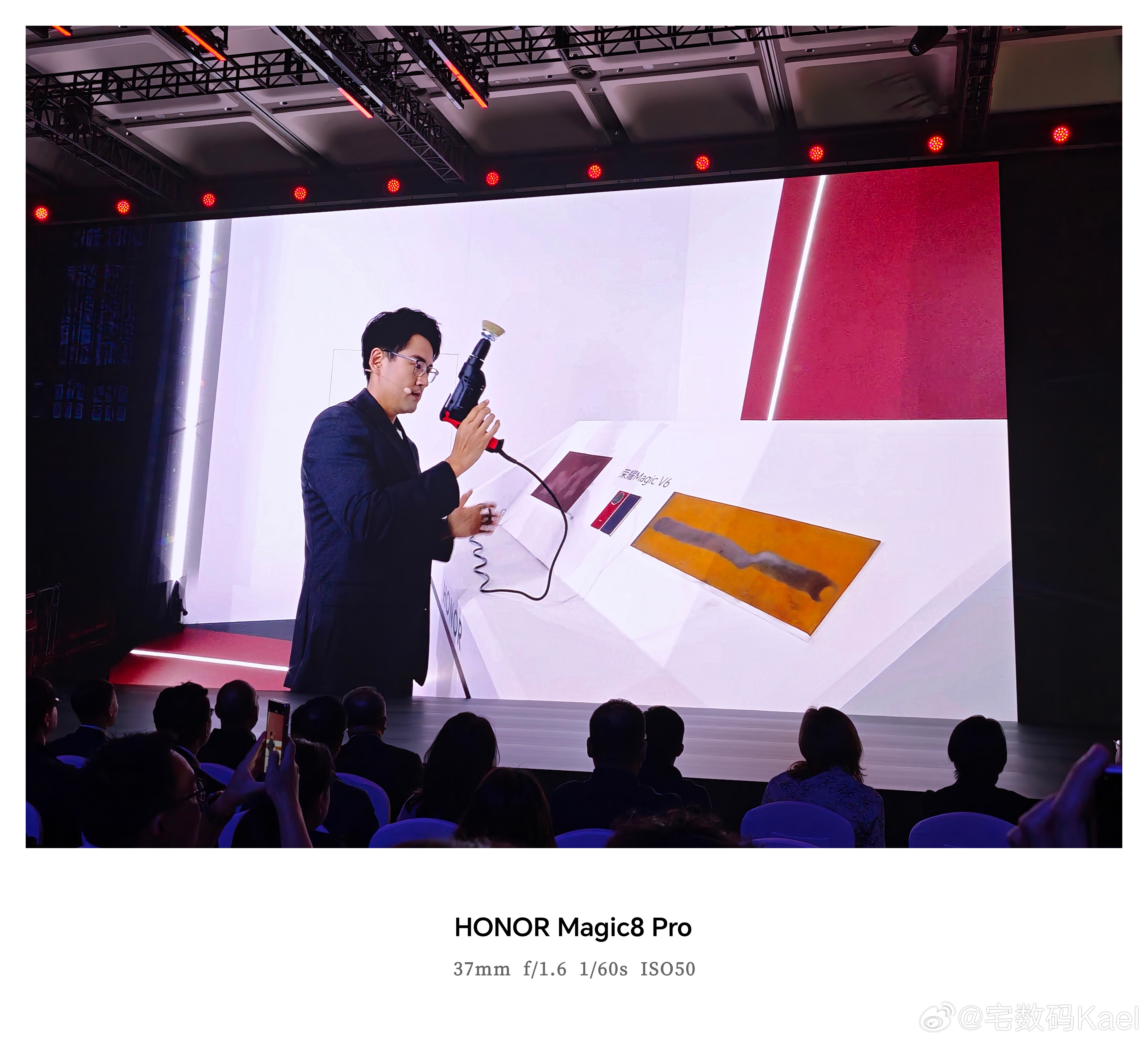 荣耀Magic V6发布会的现场,太刺激了,直接开钻啊!这「电钻狂磨」的新title,真有梗啊,会玩 深圳·前海国际会议中心