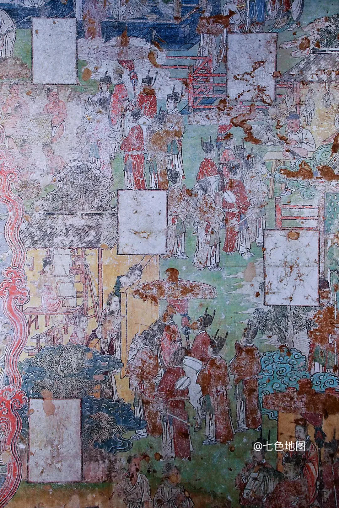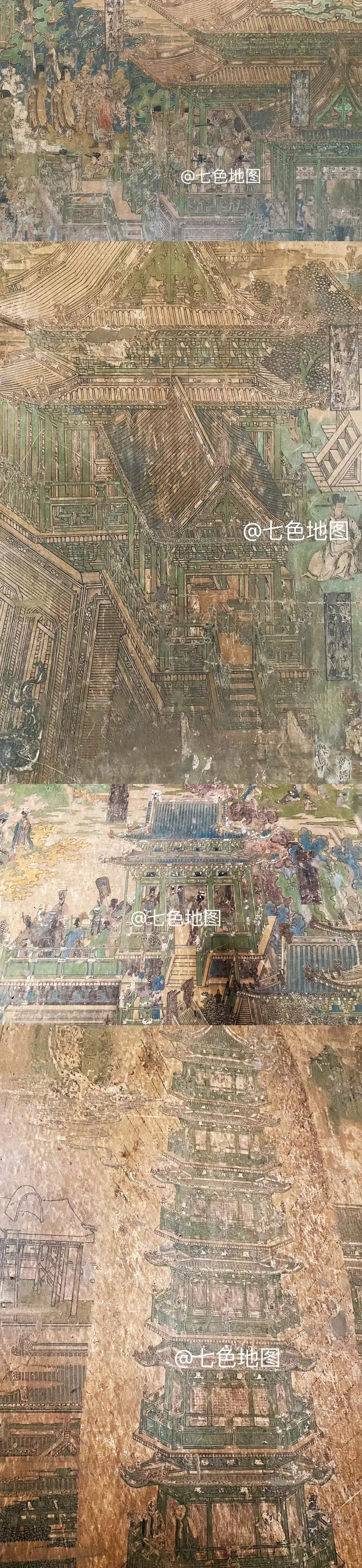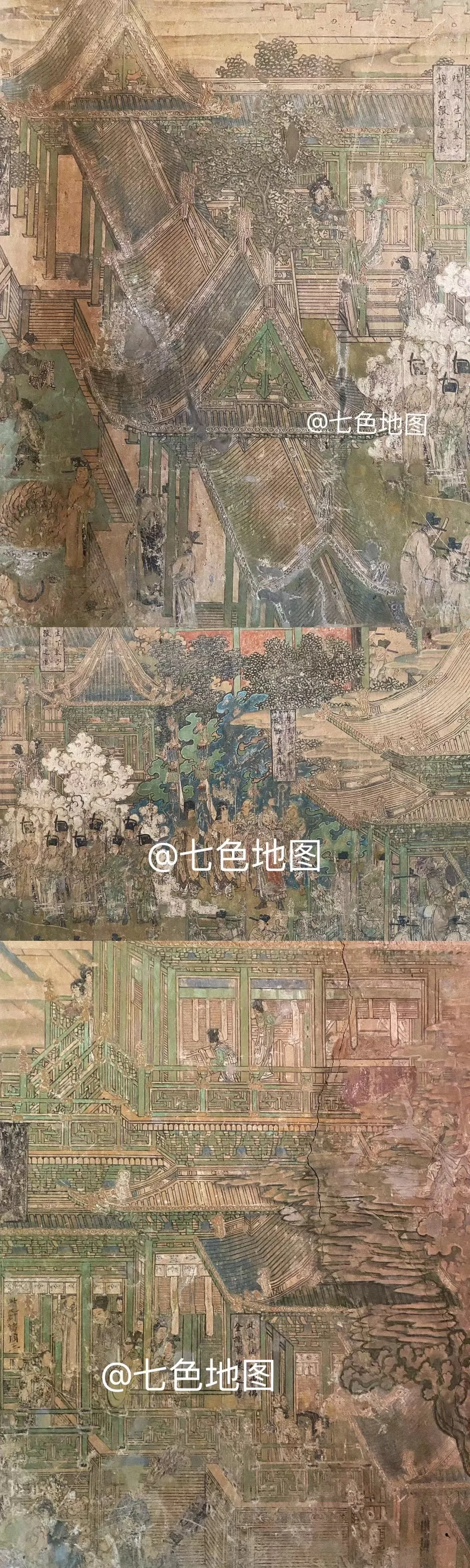 现存最大宋壁画,以青绿矿物色铺就春山春水,花铺满街、步步生莲的场景,草木新绿、桃李争妍,是北宋市井与自然的春日盛景。