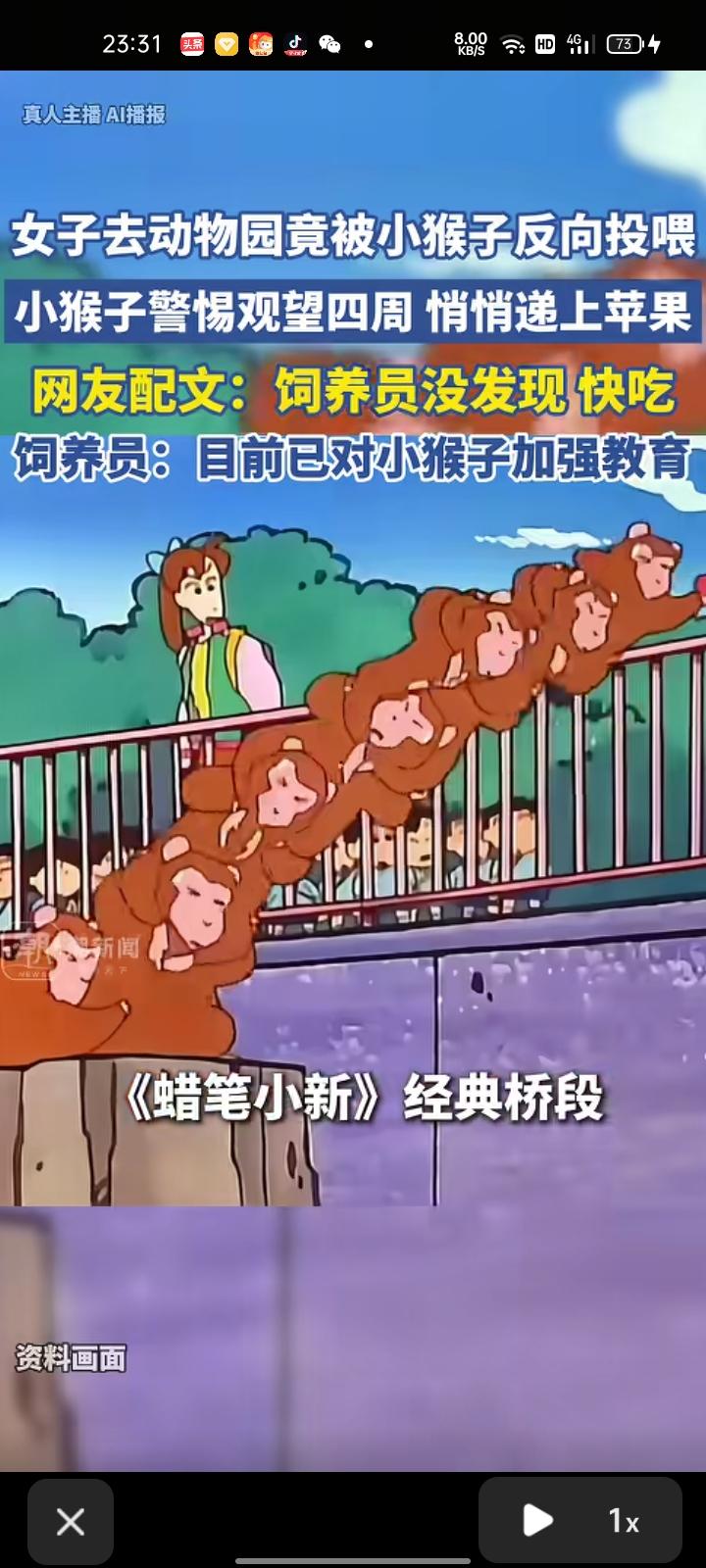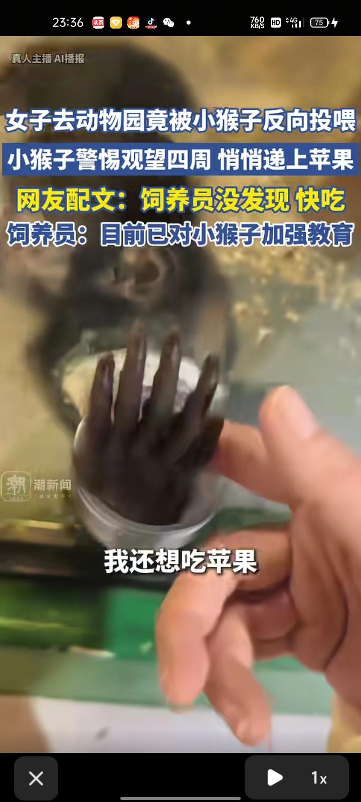 3月6日,兴安盟乌兰浩特市。女子拍下被小猴子投喂的视频走红网络,小猴子警惕的四处张望,悄悄递上苹果的动作完美复刻《蜡笔小新》经典桥段,被网友配文“禁止猴子投喂人类” 动物园工作人员表示,小猴子是两岁的黑帽悬猴,投喂人类是模仿游客行为进行示好,目前已对小猴子加强教育。 近年来,游客投喂猴子的场景屡见不鲜,但在动物园里,跟猴子讨吃的还被猴子投喂还真是头一回见。谁能想到,这只小猴子不仅听得懂人话,还十分大方地顺着话茬和人类分享食物。这场人与动物和谐共处的画面着实让人看着心生暖意,说到底,万物皆有灵性。