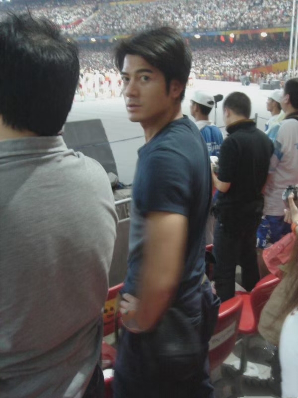 2008年北京奥运会现场,观众席中的郭富城,那个时候的郭富城年龄大约在三十四岁左右,发量依旧很多!