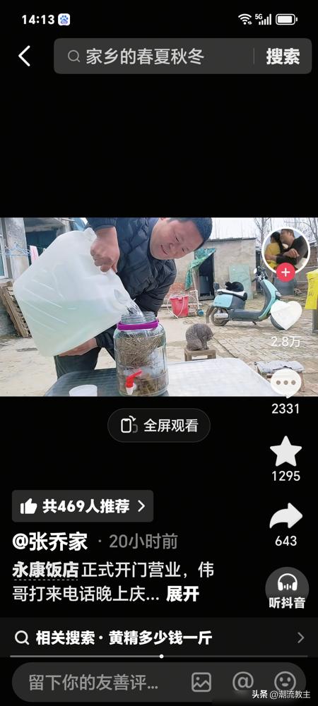 60度的玉米酒,把河南饭店老板喝服了。 他拍着桌子对张乔说:“这酒,你得代言!” 视频里,王伟抿了一口,眼睛亮了。 连倒三杯,反复咂摸。 最后撂下一句:“比咱这的‘姚花春’还带劲。” 满桌朋友跟着点头。 但没人提,这酒是张乔从四川老家背回来的。 更没人问,他为了考察另一个项目,在50多度的油坊里从早上7点干到凌晨3点。 干到失眠,岳父只能用黄精泡酒给他调理。 表面是品酒,其实是拼命。 所有你看到的“轻松带货”,背后都是拿健康换的。 这年头,真实比酒精更烈。 喝得下酒,未必扛得住生活。