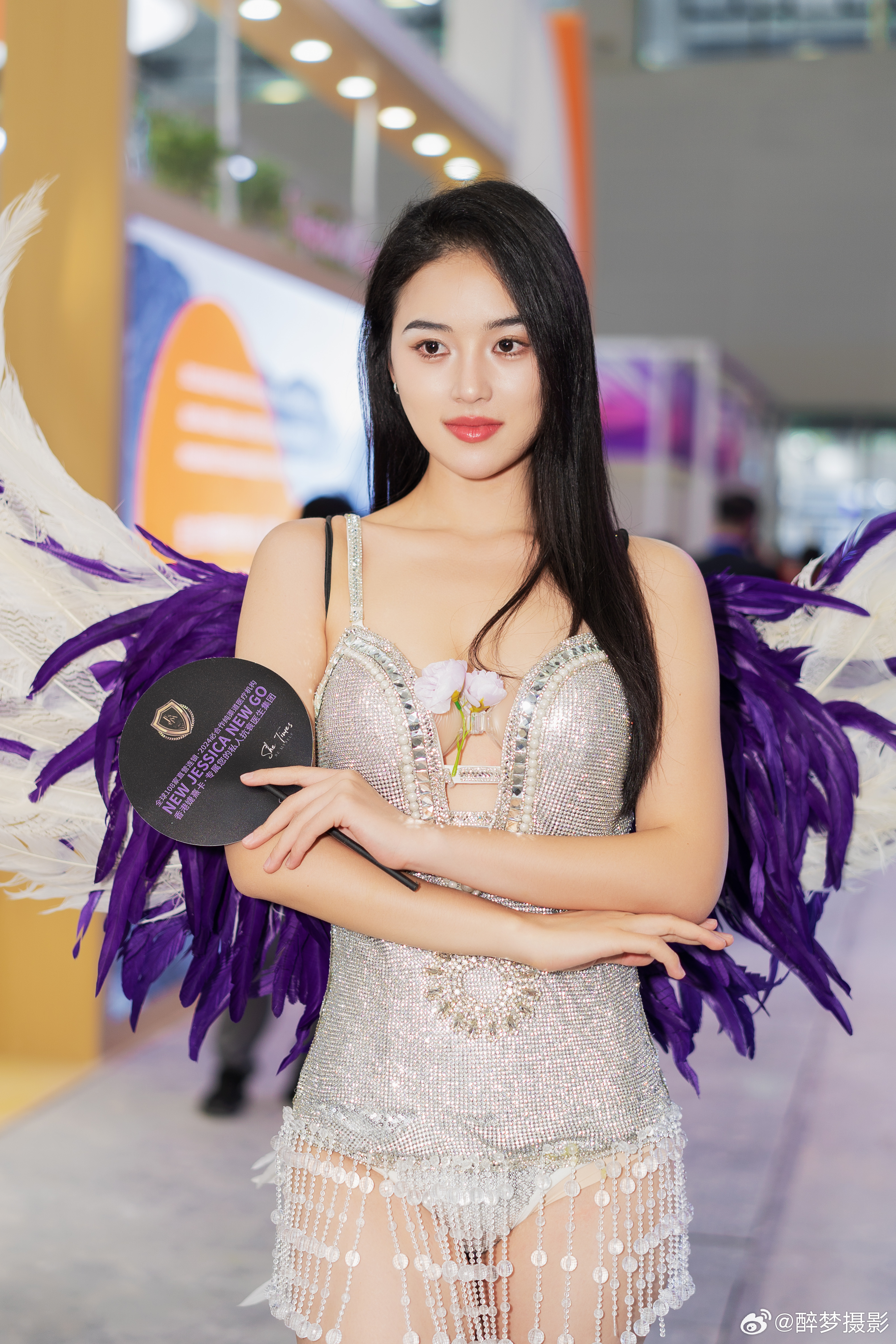 ✨闪耀登场,紫羽天使降临! 银色亮片裙+梦幻羽毛翼,美到犯规~