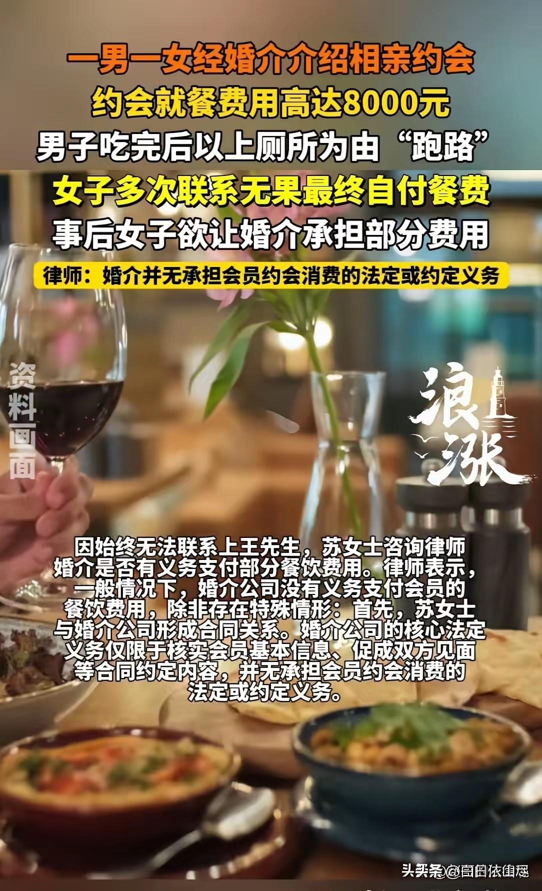 开局精彩,结局惨了!北京,一女子和相亲对象第一次见面,约在某高档餐厅,女子上来就点了一大桌子好吃的。刚吃完,男方就说去卫生间方便,女子以为男方借口去结账了,不料男方一去不回还关机。这顿饭花了8000,男方溜了,服务员不让走,女子支付8000后气炸:没少吃,还逃单,活该单身! 北京一名适龄女子在亲友的介绍下,结识了一位条件看起来不错的相亲对象,两人在线上简单交流了几天,彼此都觉得可以线下见面深入了解,便约定好在市区一家装修精致、消费档次较高的餐厅进行第一次正式见面。 女子精心打扮后准时赴约,满心期待着一场舒适体面的相亲,可她怎么也没想到,这场看似美好的开局,最后会让自己陷入无比尴尬又憋屈的境地。 见面当天,女子特意提前抵达餐厅,挑选了位置相对安静的座位,等待男方的到来。男方抵达后表现得十分绅士,主动问候、帮女子拉开座椅,全程谈吐温和,让女子对这次相亲的好感度直线上升。 落座之后,服务员递上菜单,男方十分大方地将菜单推到女子面前,示意她不用考虑价格,想吃什么就随意点,还说第一次见面,一定要让她吃得尽兴。 听到对方这样说,女子也没有过多客气,想着既然是高档餐厅,就按照自己的喜好挑选了菜品。她先是点了几道餐厅主打的海鲜类菜品,接着又选了精致的前菜、特色汤品, 还搭配了应季的时蔬和适合女生饮用的饮品,最后加上了一份餐后甜点。因为菜品单价偏高,再加上点的种类较多,桌上很快就摆满了一整桌食物,看起来十分丰盛。 整个用餐过程中,两人从工作聊到生活,从兴趣爱好聊到未来规划,气氛看起来十分融洽。男方全程配合着女子的话题,时不时还会主动夹菜, 表现得体贴又周到,女子完全沉浸在初次见面的愉快氛围里,丝毫没有察觉到任何异常,甚至在心里觉得,这次遇到的相亲对象靠谱又大方。 用餐接近尾声时,桌上的菜品也所剩无几,两人都已经吃饱。就在这时,男方突然站起身,对着女子温和地说自己想去一下卫生间,很快就回来,让女子稍等片刻。 女子没有任何怀疑,笑着点头同意,在她的认知里,男生在约会结束前借口去卫生间,大多是悄悄去前台结账,不想让女生觉得尴尬,她甚至还在心里暗自庆幸,觉得对方细节做得很到位。 可时间一分一秒过去,十分钟、十五分钟、二十分钟,男方依旧没有回来。女子开始觉得不对劲,心里隐隐有些不安,她拿出手机,找到男方的联系方式, 先是发了消息询问情况,迟迟没有收到回复后,又直接拨打了语音电话,可电话那头却传来关机的提示音。她不死心反复拨打,结果依旧是关机,之前聊天的社交软件,消息也始终处于未读状态,男方就像凭空消失了一样。 就在女子慌乱又疑惑的时候,负责这桌的服务员拿着消费账单走了过来,礼貌地告知两人这顿饭的总消费金额为8000元,请她这边完成结账。女子听到这个数字瞬间懵了,她反复跟服务员核对账单,确认金额无误后,脸色瞬间变得苍白。 她再次尝试联系男方,可对方始终关机失联,看着站在一旁等待的服务员,以及周围其他客人投来的目光,女子尴尬得无地自容,进退两难。餐厅方面表示,没有结账之前不能离开,女子被逼无奈,只能咬着牙,用自己的手机扫码支付了这8000元的餐费。 付完钱的女子再也忍不住情绪,又气又委屈,当场红了眼眶。她怎么也想不通,明明是两个人一起用餐,男方全程也在吃菜喝酒,没有对点餐提出任何不满,最后却用逃单这种方式离开,甚至直接关机拉黑,连最基本的责任和担当都没有。 女子表示,自己并不是在意这8000块钱,而是对方的行为实在让人难以接受,第一次见面就做出这样不负责任的举动,完全没有做人的底线。 原本满怀期待的相亲,最后变成了一场闹剧,自己不仅平白损失了一笔钱,还受了一肚子气,整场经历让她又无奈又崩溃。 走出餐厅的那一刻,女子越想越气愤,直言这样没有担当的人,注定只能单身。这场荒唐的相亲经历,也成了她心里一段难以忘记的尴尬回忆。 对此,你们有什么看法,欢迎评论留言~
