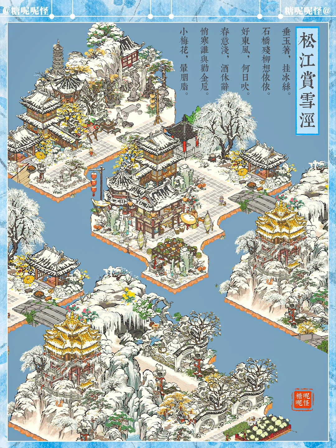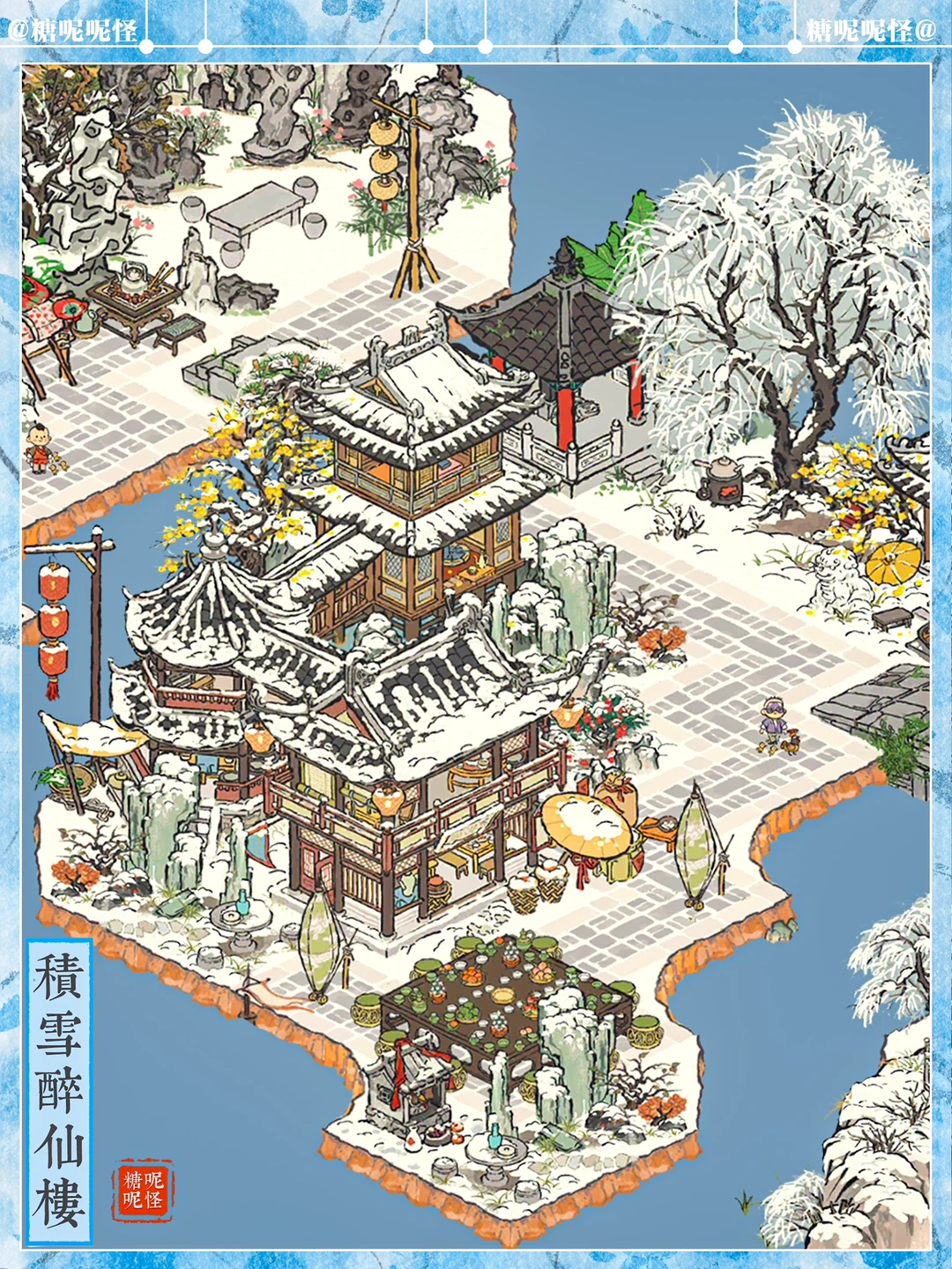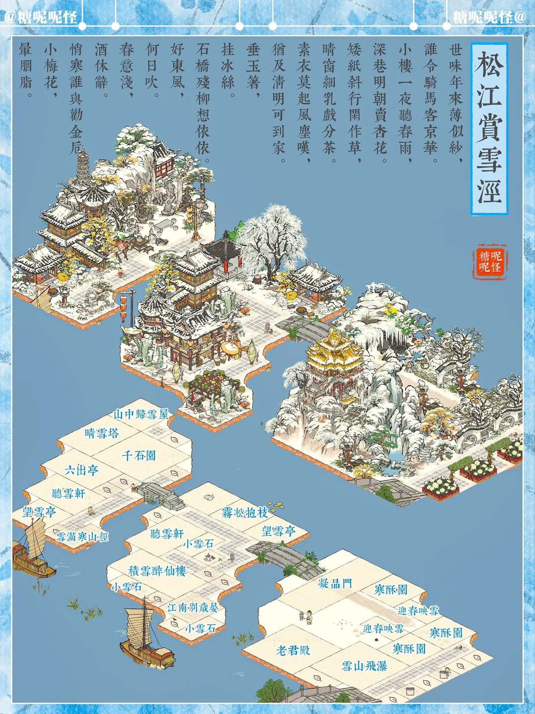 ❄️松江府龙门泾+斜塘泾+春申泾雪景一体化布局 ❄️穿过【寒酥园】,走过【凝晶门】,在醉仙楼吃茶,最后去往伴山楼赏雪……