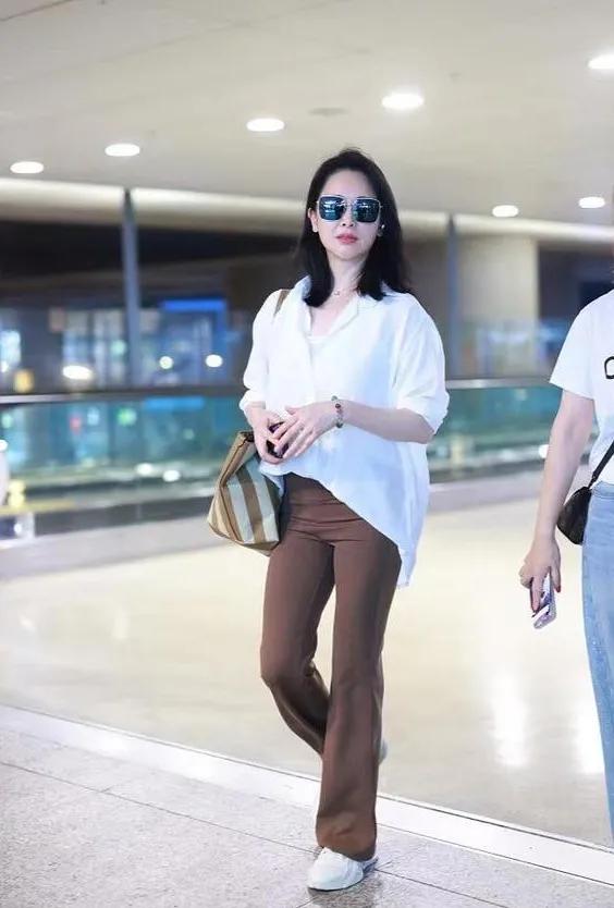 被左小青状态惊艳!新剪的齐肩短发年轻20岁,白衬衫配棕裤清爽温柔,墨镜一戴,随性又时髦,这状态谁不羡慕~ 左小青 减龄发型 松弛感穿搭