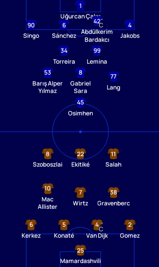 欧足联官网把433改成4231(换了下球衣颜色),但是索博和维尔茨的位置还是不动……范戴克即将打破卡拉格连续首发33场的非门将纪录
