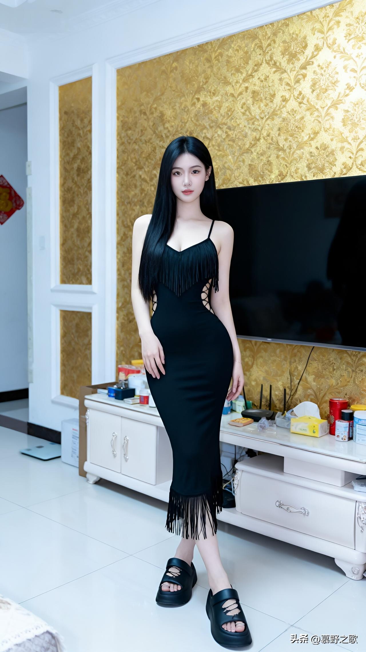 今天在家尝试了一款黑色的流苏长裙,这种大胆的设计让我感受到了不一样的自己。黑色的吊带裙勾勒出身体的曲线,胸前和裙摆的流苏设计增添了几分灵动与妩媚。站在金色花纹的墙面前,感觉自己像一位即将出席晚宴的优雅女士。虽然只是在家里,但这样的装扮让我心情愉悦,也让我明白,美丽不仅仅是为了给别人看,更是为了取悦自己。每一个平凡的日子,都可以因为一点点的改变而变得闪闪发光。 黑色长裙 流苏元素 优雅气质 自我欣赏