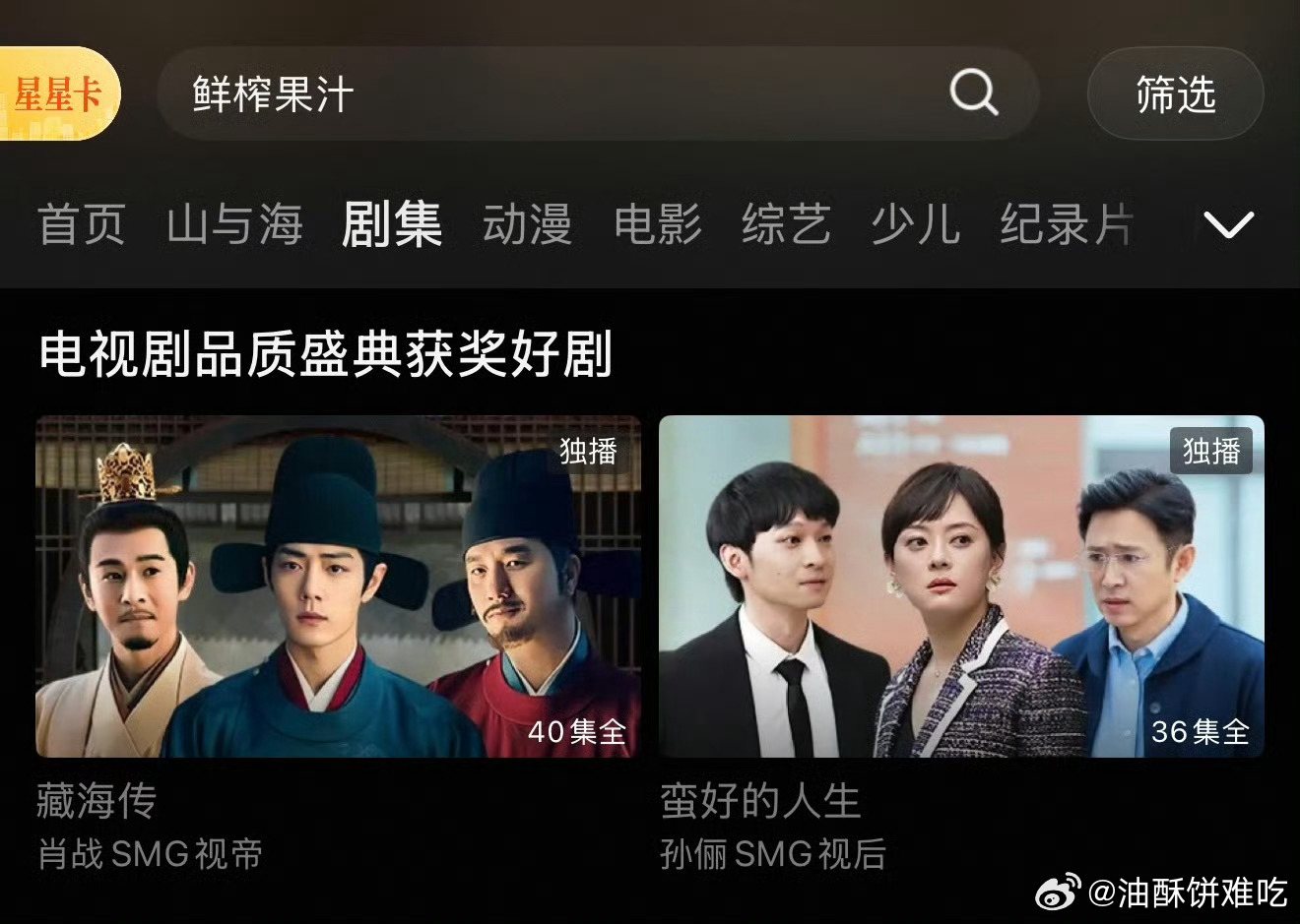 这波优酷真的爽到了,SMG视帝视后都是它的独播剧,优酷也是横扫SMG了