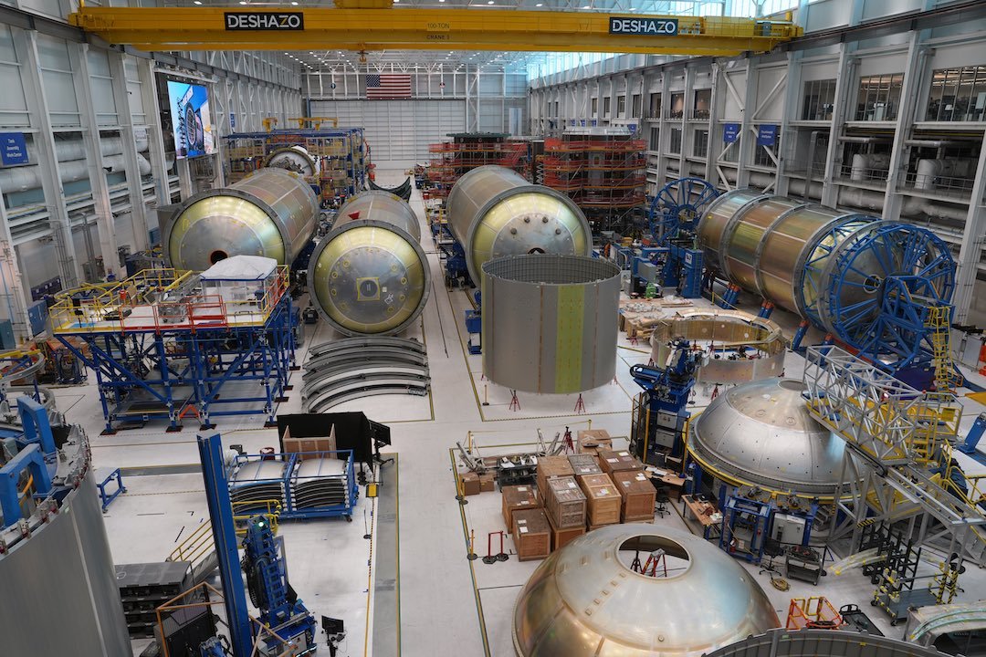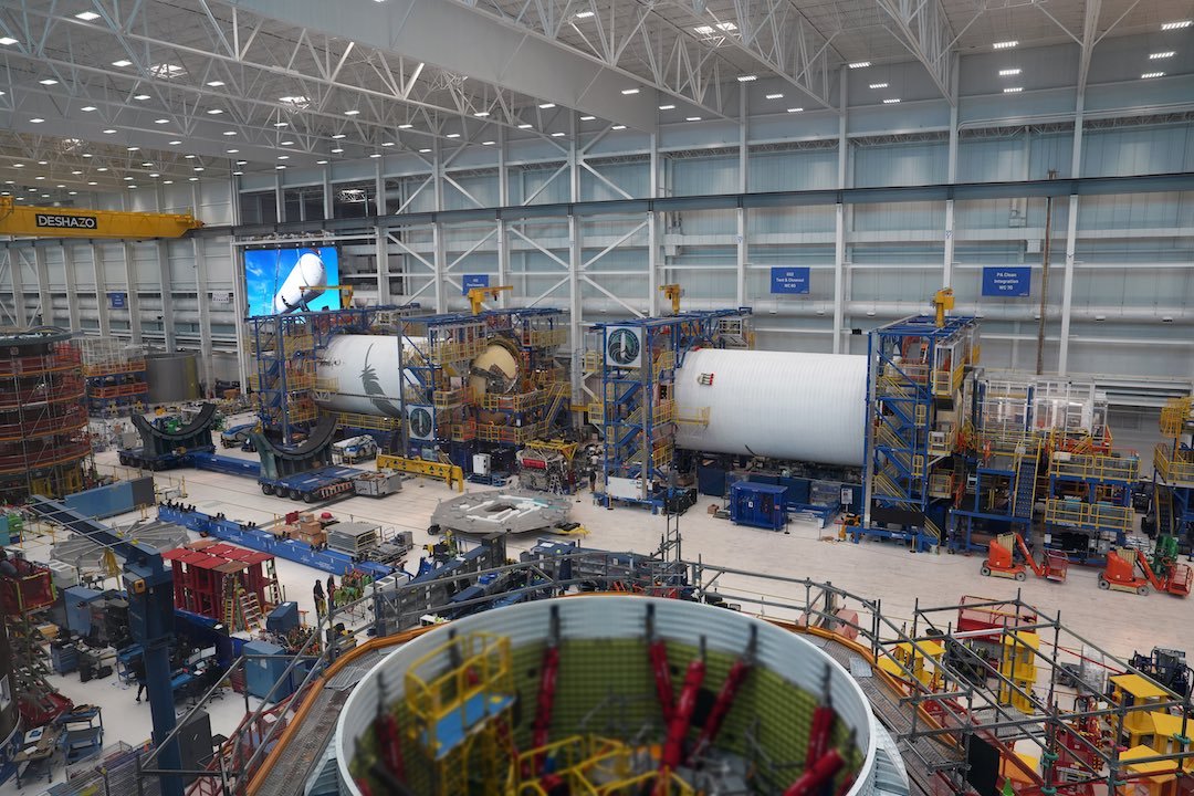 DaveLimp晒出了火箭工厂的照片,可以看到有多个新格伦的一二级正在生产。