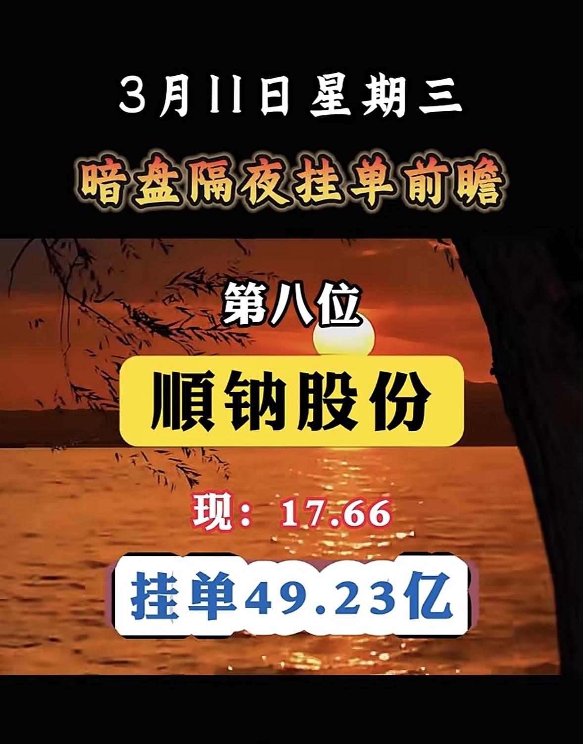 3月11日暗盘隔夜挂单个股梳理 顺钠股份