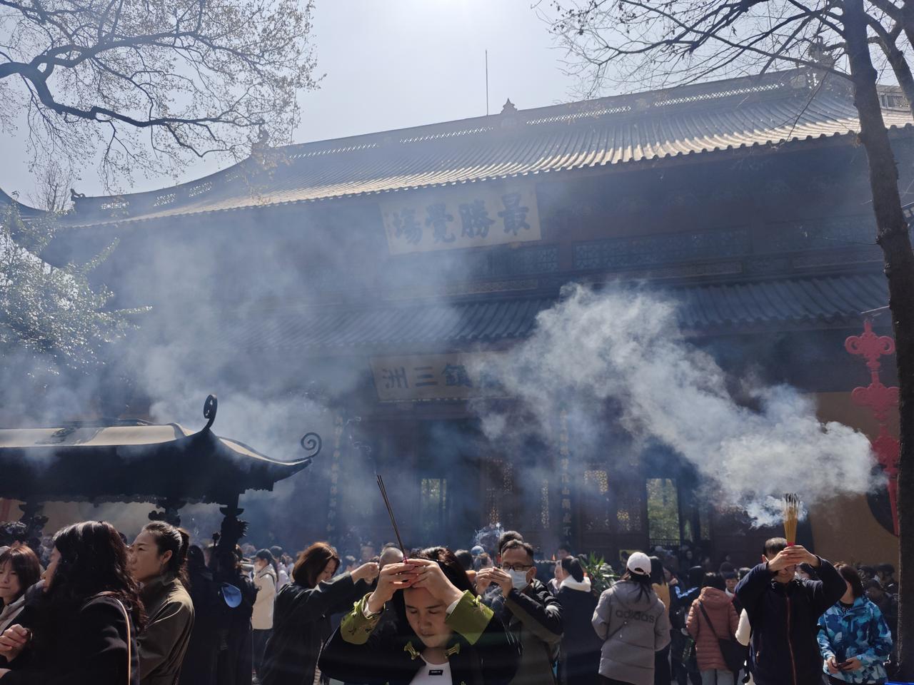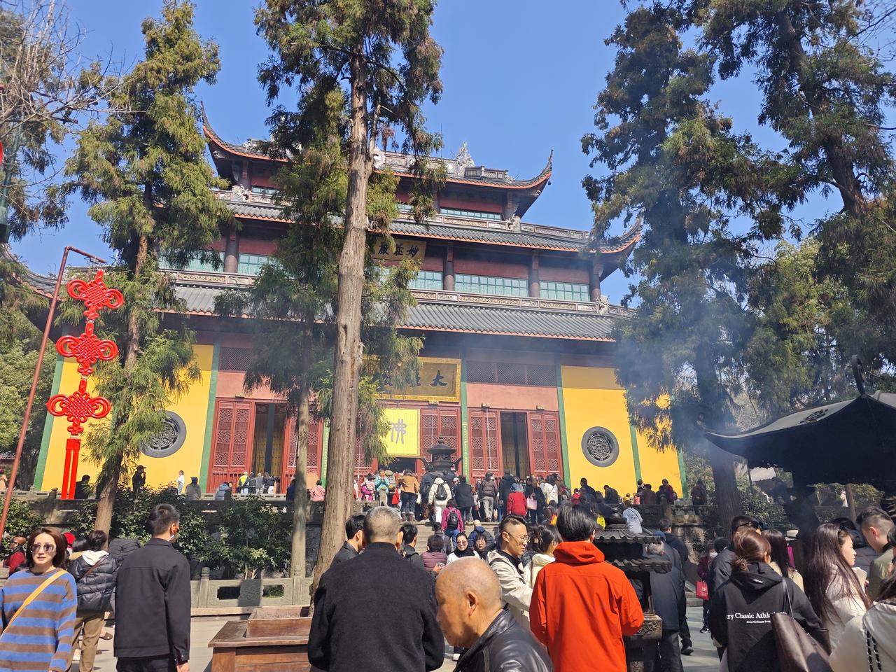 我的今日状态:😁轻松愉快 我这里的天气:☀️晴天 灵隐寺香火总是那么旺盛,前来烧香拜佛的善男信女们脸上都表现出来最虔诚的模样,手持三炷香为家人祈福。 眼前香烟袅袅的灵隐寺大雄宝殿,如同有着一股神秘的力量, 吸引着众多信徒们前来烧香拜佛。