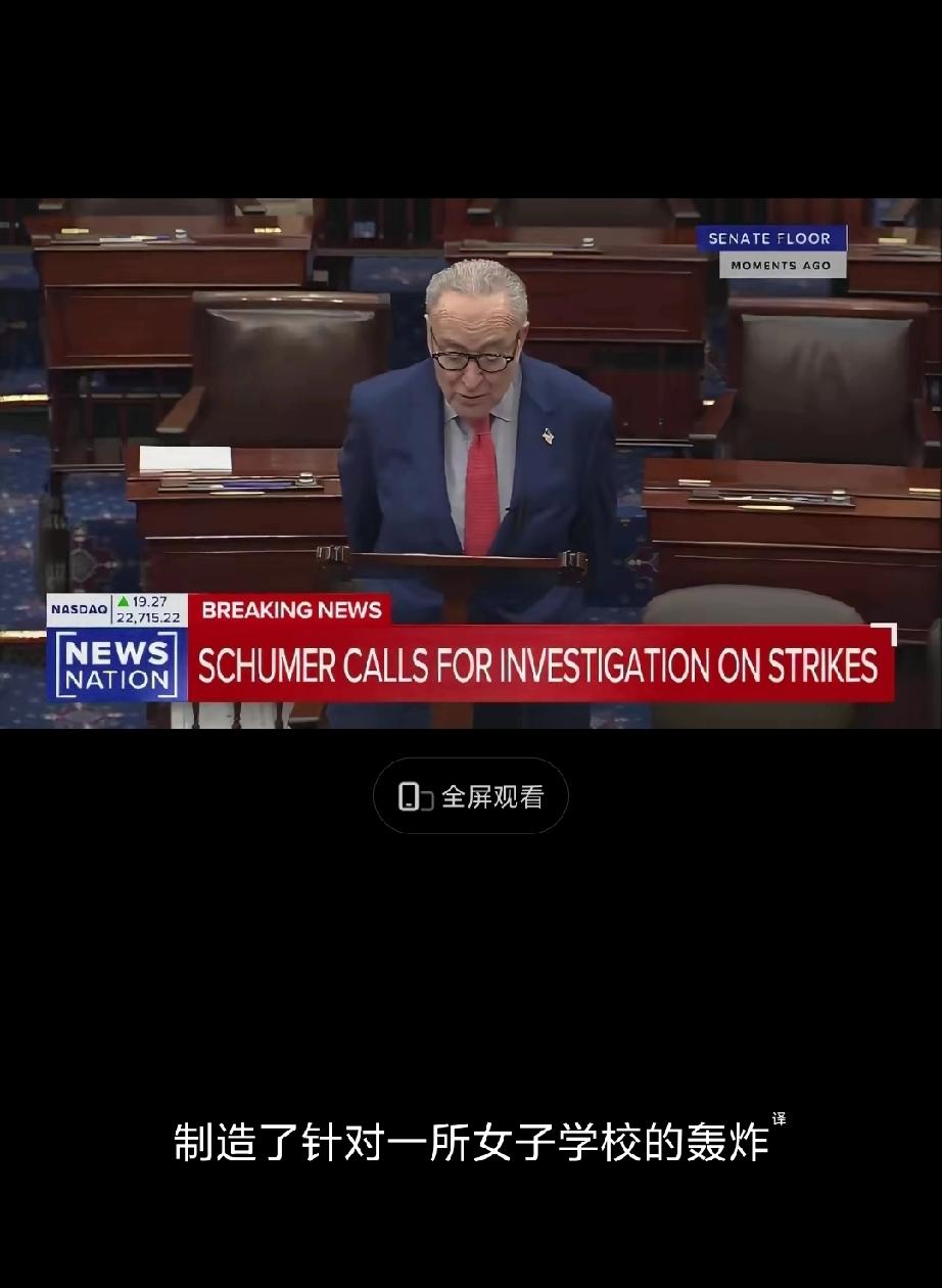 参议院民主党领袖查克·舒默说特朗普彻头彻尾的说谎,并要求彻查伊朗女子学校遇袭事件