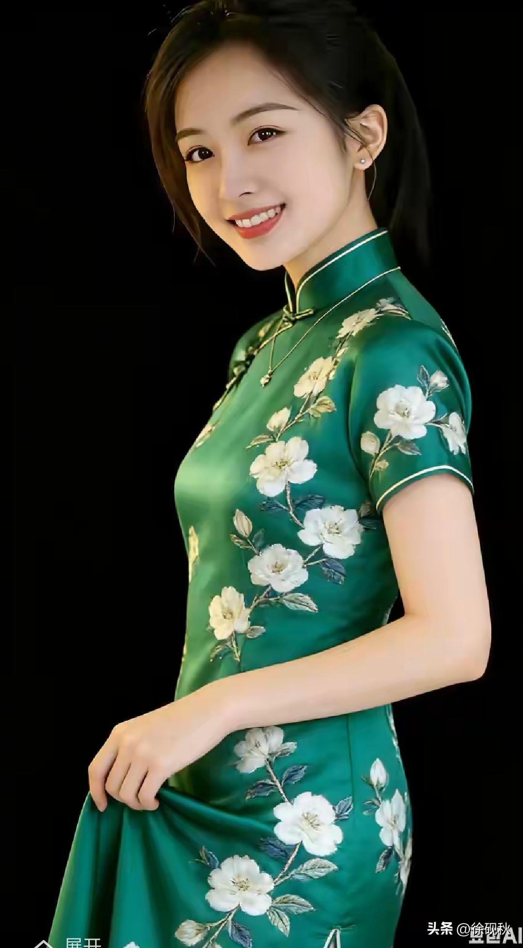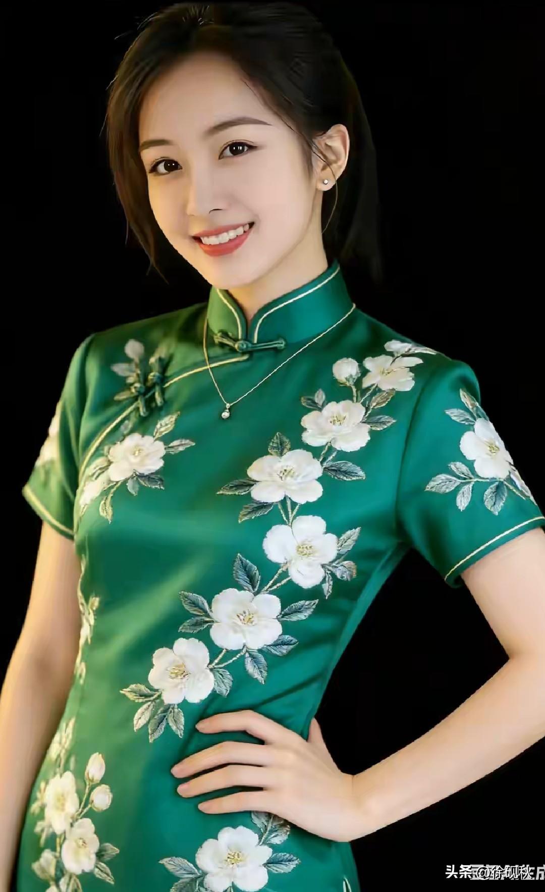 旗袍雅韵,文化传承。 绿意凝裳,白花缀韵。 一颦一笑,江南烟雨。 流动风景,清雅诗意。 出水芙蓉,亭亭玉立。 沉鱼落雁,秀色可餐。