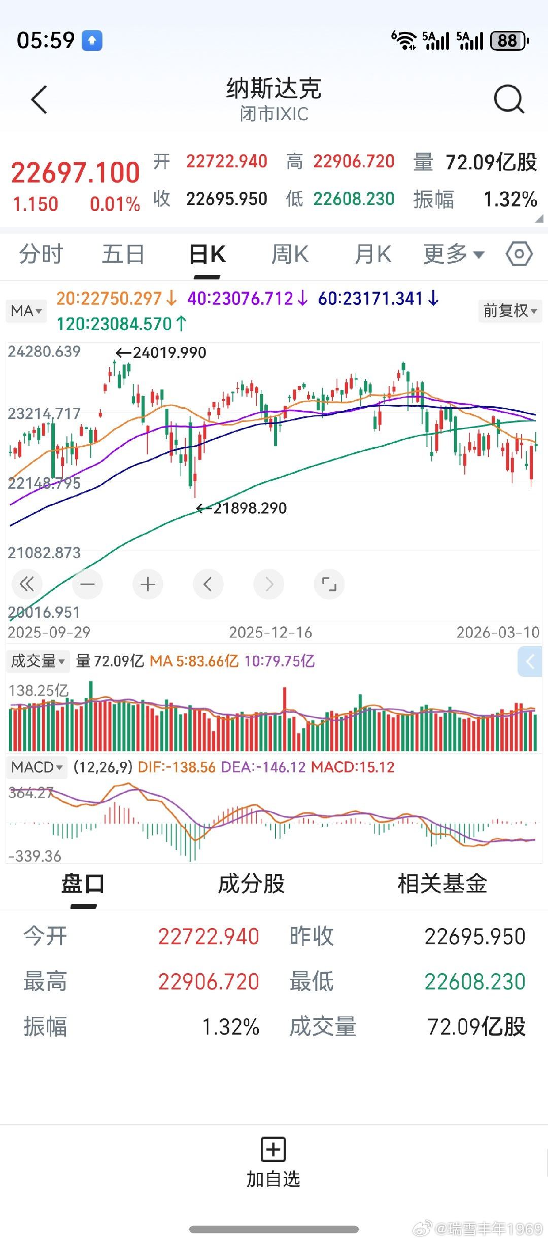 隔夜美股冲高回落,纳指未能站上20天线。纳指转好标志,最起码是站稳20天线。如果有效站上120天线,可靠性就大得多。对后市走势,个人无能力预判。走一步看一步,做天和尚撞天钟。