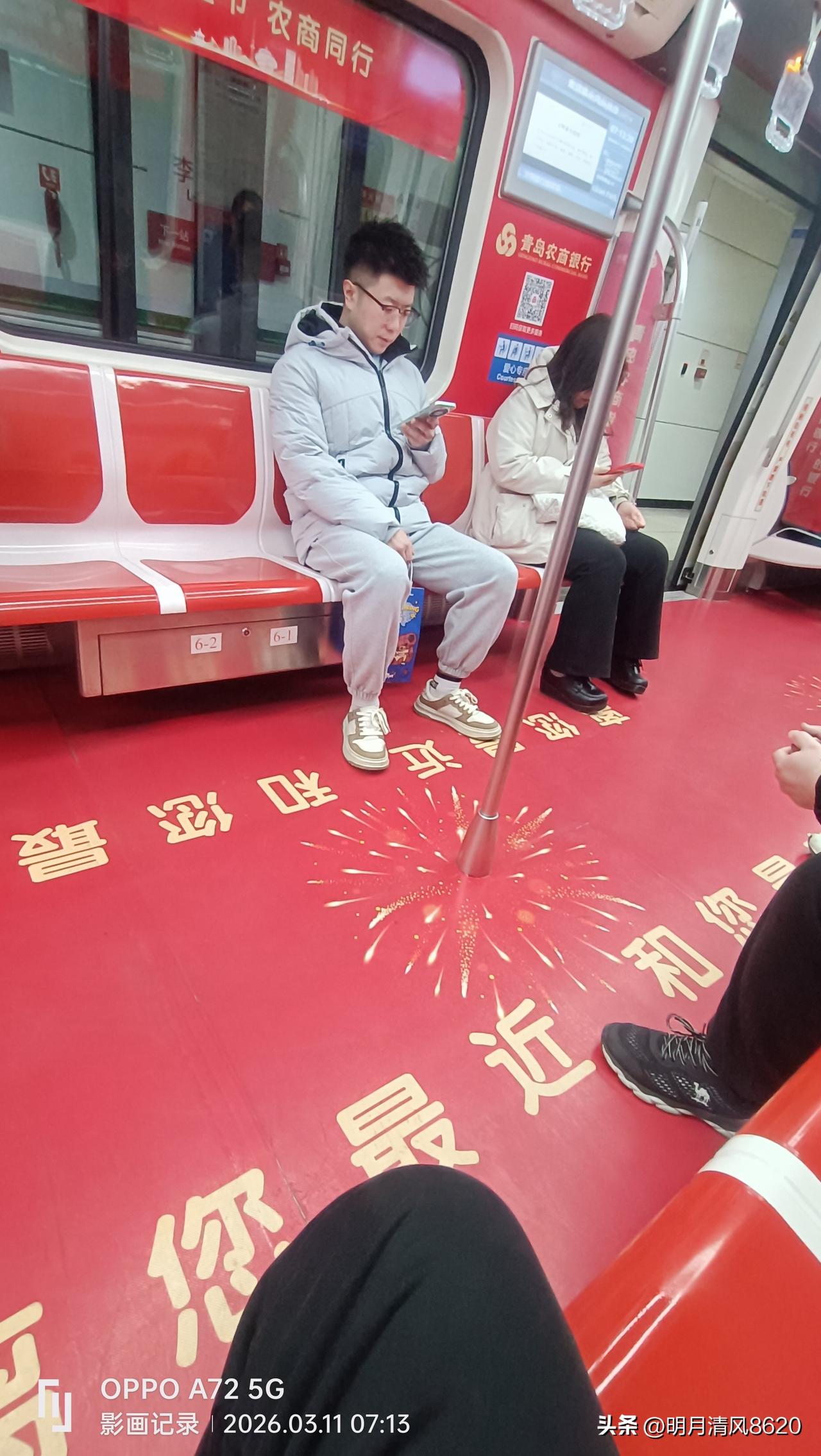 今天早上上了地铁之后,竟然发现地铁车厢好酷呀!满眼间的中国红,好喜感呀! 本埠地铁2号线已经运行多年,已经是一个老线路了,和不断投入运营新线相比,这个线路已是很过时了,但是我从来没有见过有如此颇有"中国风"的全红背景车厢内饰,可能是我太孤陋寡闻了。 朋友们看看这个车厢是不是很美观?