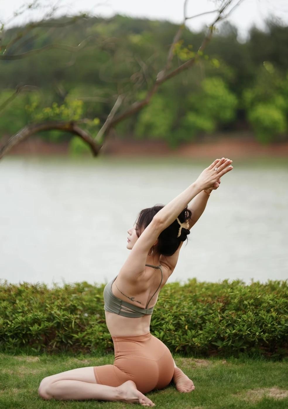 在湖边做瑜伽,感受自然的宁静与美好。