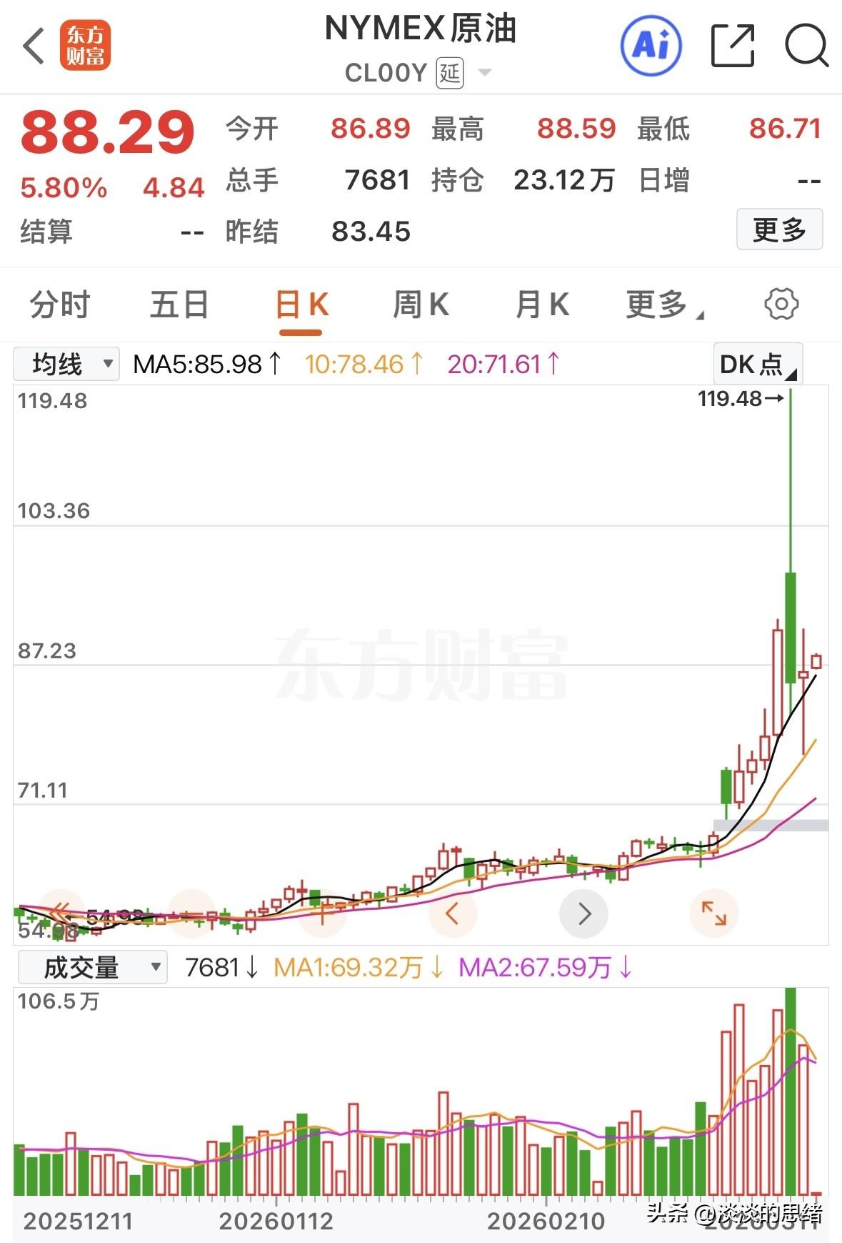 刚刚原油开盘又大涨超6%,近期因为原油大涨大跌,不少参与油气股的股民亏损惨重,本以为会大涨的时候却大跌了,进去就套牢。 原油在持续大幅上涨四天后,出现了剧烈波动,前天从盘中大涨超30%到收盘大跌近9%,全天振幅39个点,创原油期货成立以来最大单日波动。 昨天原油继续跳空大跌,盘中没有像样的拉升,深夜一度跳水大跌17%,后虽然拉回一些,但收盘也大跌8.84%。 今天原油跳空高开4.16%,开盘后没有下探,盘中继续拉升,此时已经上涨超6%。原油涨对很多行业都会形成利空。 但对于利好的板块也会出现不一样的走势,高开低走,或拉高套人,就开始原油大涨的时候相关板块同步大涨过,接下来都是套人的走势。 如果不信邪进去就被套,昨天A股跌幅最多的就是油气开采和石油加工以及天然气板块,这些板块已经走坏了,现在即使原油继续大涨,进去也可能是被套的现状。 所以此时原油大涨,投资者不要激动,不然会误判走势。