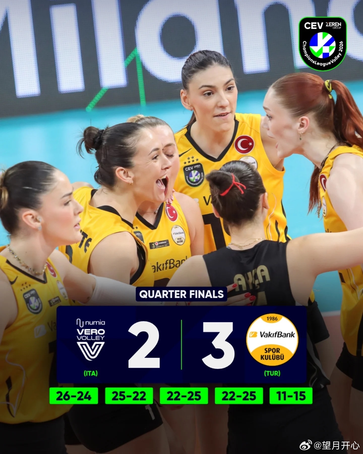 【欧冠八强赛首场—-米兰2-3瓦基弗银行】2025/26赛季女排欧冠联赛八强赛首场开打,米兰女排主场先赢两局后被翻盘,最终2-3不敌瓦基弗银行!马尔科娃MVP五局比分26-24 , 25-22 , 22-25 , 22-25 , 11-15世界女排新闻女排欧冠国际排坛动态 马尔科娃36分(65扣34中2失误3被拦2拦,40一传2失误)博斯科维奇20分(41扣16中3失误3被拦3拦1发)卡佐特19分(26扣18中1失误2被拦,26一传2失误)泽赫拉7分(13扣5中1失误2被拦2拦)奥格博古5分(10扣4中1失误1被拦1发)奥兹巴伊1分马鲁阿1分