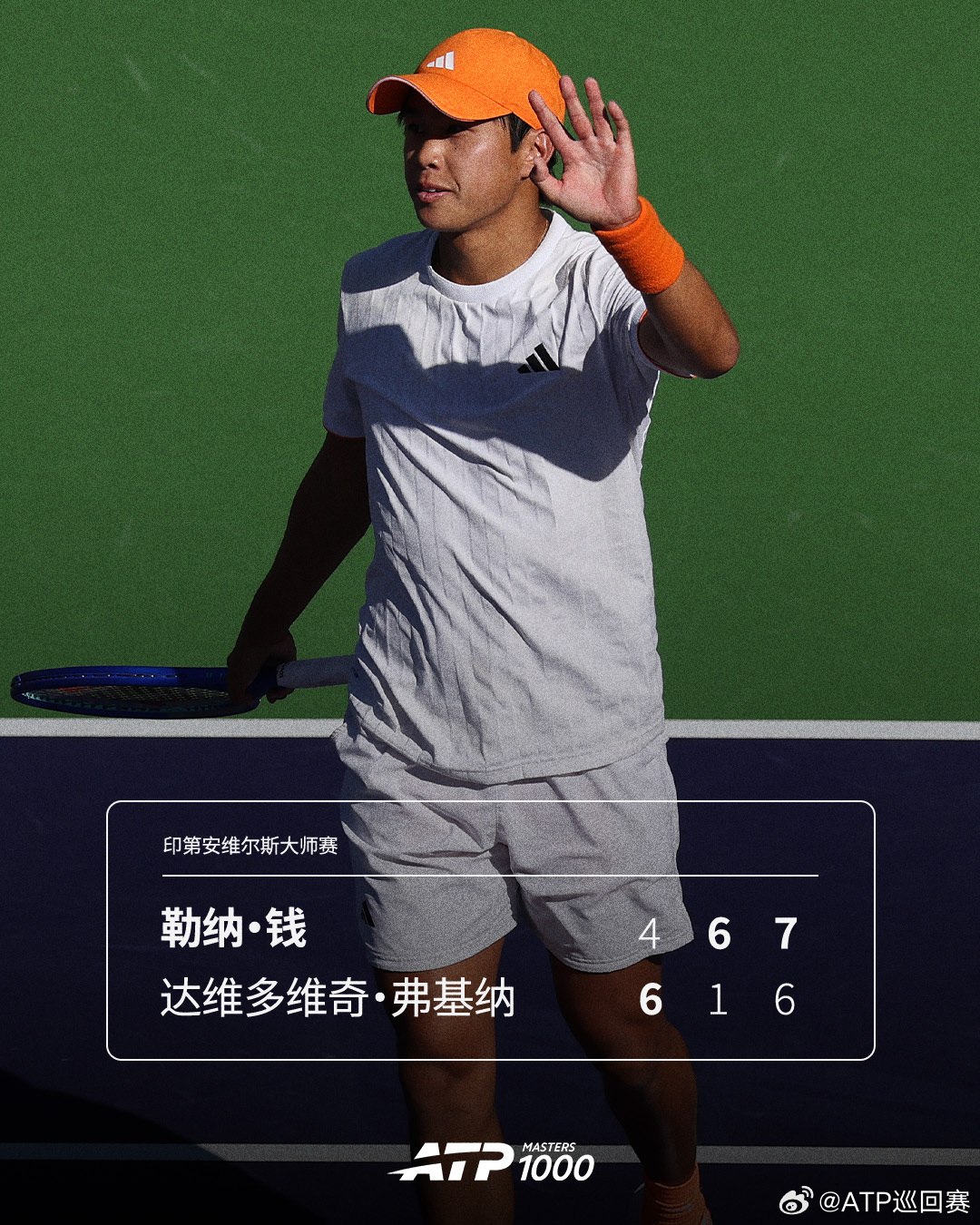 ATP1000印第安维尔斯大师赛第四轮,25号种子勒纳·钱在决胜盘4-5落后的发球局挽救两个赛点,以4-6 6-1 7-6(4)逆转18号种子达维多维奇·弗基纳,将双方交手记录改写为1-1,生涯首次闯进大师赛八强!他四分之一决赛对手将在辛纳和丰塞卡之间产生。