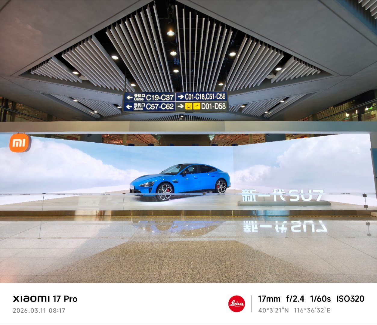 来小米之家 贴了个免费手机膜欣赏了新一代SU7 赤霞红实车颜色非常靓丽 很有质感
