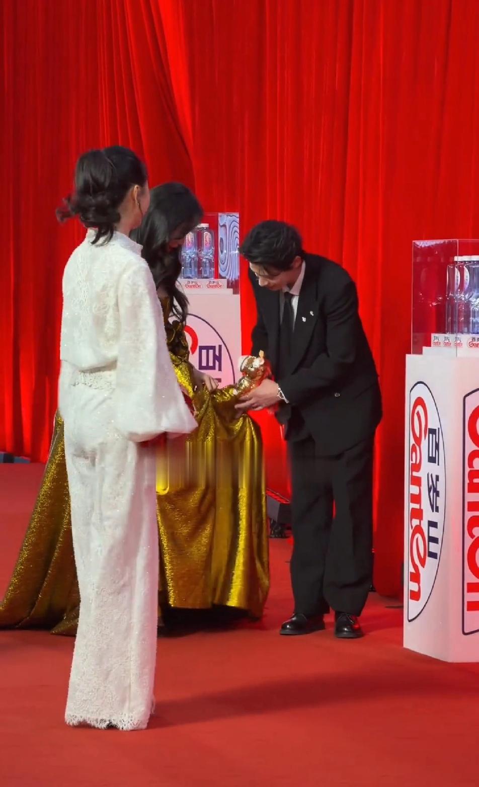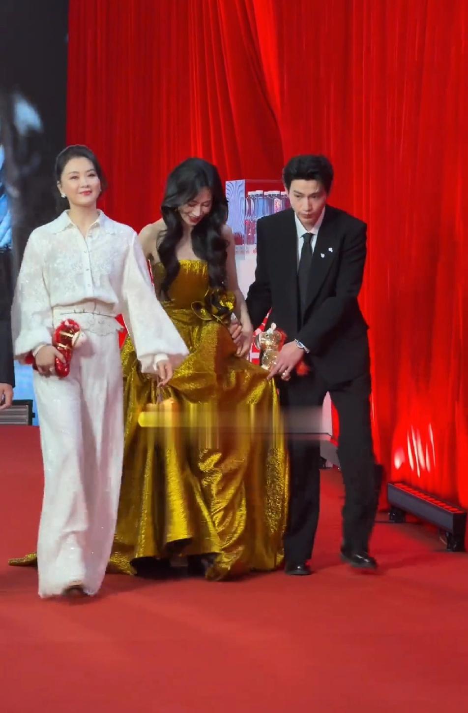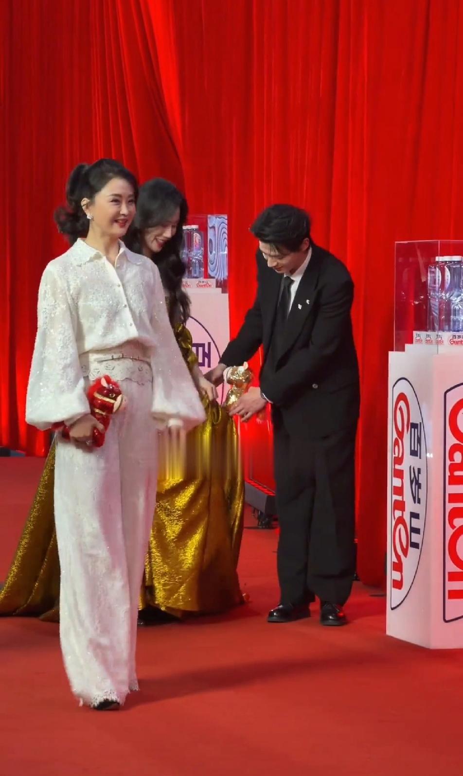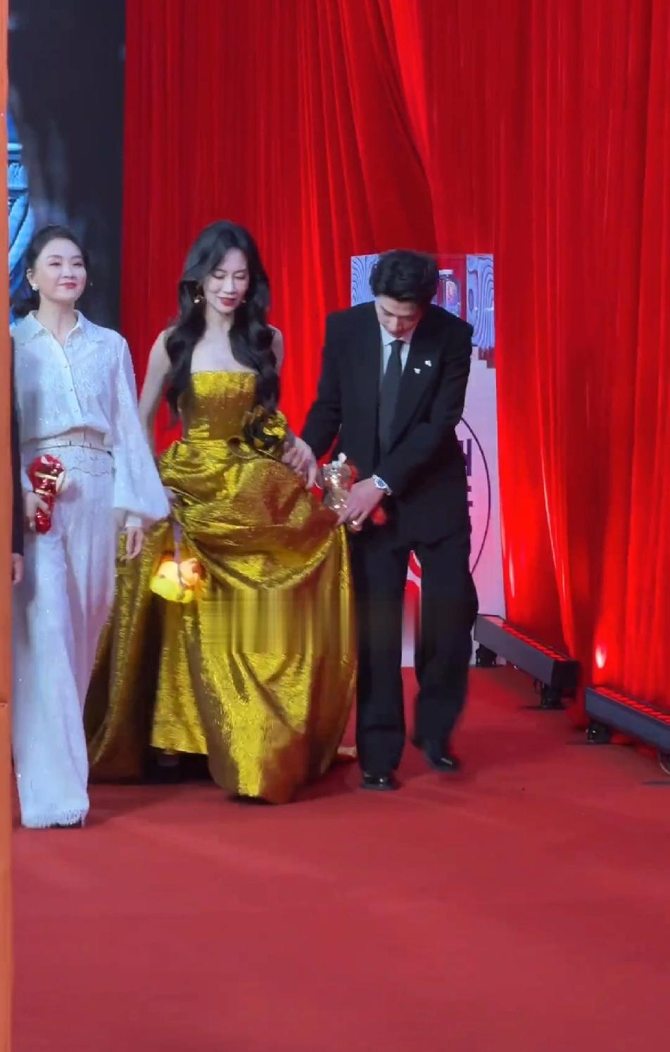 辛云来这个大直男,给温峥嵘提个裙子都提不明白,辛云来提的裙子高度正好绊住温峥嵘的脚,姐总是踩住裙子,姐想自己往上提提裙子,结果手还被辛云来死死的抓住,辛云来是真下力去扶姐的,但是用力过猛了,峥嵘姐实在不好走,只能停下强行把手抽出来,自己托住裙子,辛云来终于看明白了,赶紧把姐的裙子提高了点,不容易,辛云来真的是大直男一个,姐能顺利走个红毯不容易!但是,辛云来对姐是真的上心!温铮嵘