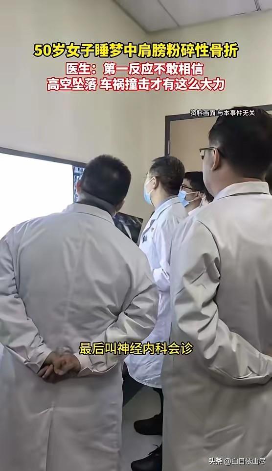 “万万没想到!”近日,河南,一50岁大姐在睡梦中粉碎性骨折,肩膀骨头碎成七八块,来到医院后,丈夫称大姐全程在床上躺着,但医生却不信,因为这种骨折需要很大撞击才会出现,最后一做检查,才知道是女子癫痫发作造成的!网友:差点解释不清了! 近日,河南一家医院接诊了一位特殊的患者,一位50岁的大姐被家人紧急送来,检查结果显示她的肩膀出现严重粉碎性骨折,断裂的骨头碎成了七八块,伤情让在场医生都感到十分震惊。 家人搀扶着大姐进入诊室时,她疼得脸色发白,连抬手的动作都无法完成,丈夫在一旁焦急地向医生描述情况,称大姐当天一直安稳躺在床上休息,全程没有离开过床铺,也没有发生摔倒、碰撞等情况,睡醒之后就开始喊肩膀疼痛,没想到会严重到骨折的地步。 医生听完家属的描述,心里立刻产生了疑惑。粉碎性骨折不同于普通的骨裂,这种程度的损伤通常需要强大的外力撞击、剧烈磕碰或是高处坠落才会形成,单纯躺在床上静止休息,根本不可能出现如此严重的骨骼损伤。 医生结合临床经验判断,要么是家属隐瞒了真实情况,要么是存在某些不为人知的特殊诱因,为了不耽误治疗,医生先安排大姐进行全面的影像检查,同时仔细询问大姐和家属过往的身体状况,逐一排除外力受伤的可能性。 检查结果很快出来,影像中清晰显示大姐的肩关节部位骨质碎裂,确实符合严重粉碎性骨折的特征,可家属始终坚持没有发生过撞击、摔倒等意外,双方的表述让诊断陷入了短暂的僵局。 医生没有放弃排查,继续耐心和大姐沟通,询问她睡前、睡梦中的身体感受,是否有过不自觉的肢体动作或是异常反应。 在反复沟通后,家属突然想起,大姐本身患有癫痫病症,平时病情控制相对稳定,很少出现明显发作的情况,当天夜里她在睡梦中,确实出现过短暂的肢体抽搐。 这一细节立刻引起了医生的重视,结合骨折位置、损伤程度以及患者的病史,医生很快得出了结论。 大姐之所以在睡梦中出现粉碎性骨折,正是因为癫痫突然发作,睡眠状态下身体发生不受控制的剧烈抽搐,肩膀部位在强力痉挛的拉扯和惯性作用下,导致骨骼承受了远超承受范围的力度,最终造成粉碎性骨折,骨头直接碎成了七八块。 得知这个真正原因后,丈夫瞬间松了一口气,原本担心无法说清受伤缘由,甚至差点被误解隐瞒情况,没想到竟是癫痫发作引发的意外。 医生也表示,这种情况在临床中并不常见,静止状态下因病症发作导致粉碎性骨折,确实十分出乎意料,也给不少家属提了醒。 随后医生为大姐制定了对应的治疗方案,先稳定骨折部位,再结合癫痫病史进行综合调理,避免后续因类似问题造成二次伤害。 整个过程既让人揪心又充满意外,不少了解此事的网友都表示,这种受伤方式实在太特殊,若不是检查确认,恐怕真的很难解释清楚。 对此,你们有什么看法,欢迎评论留言~
