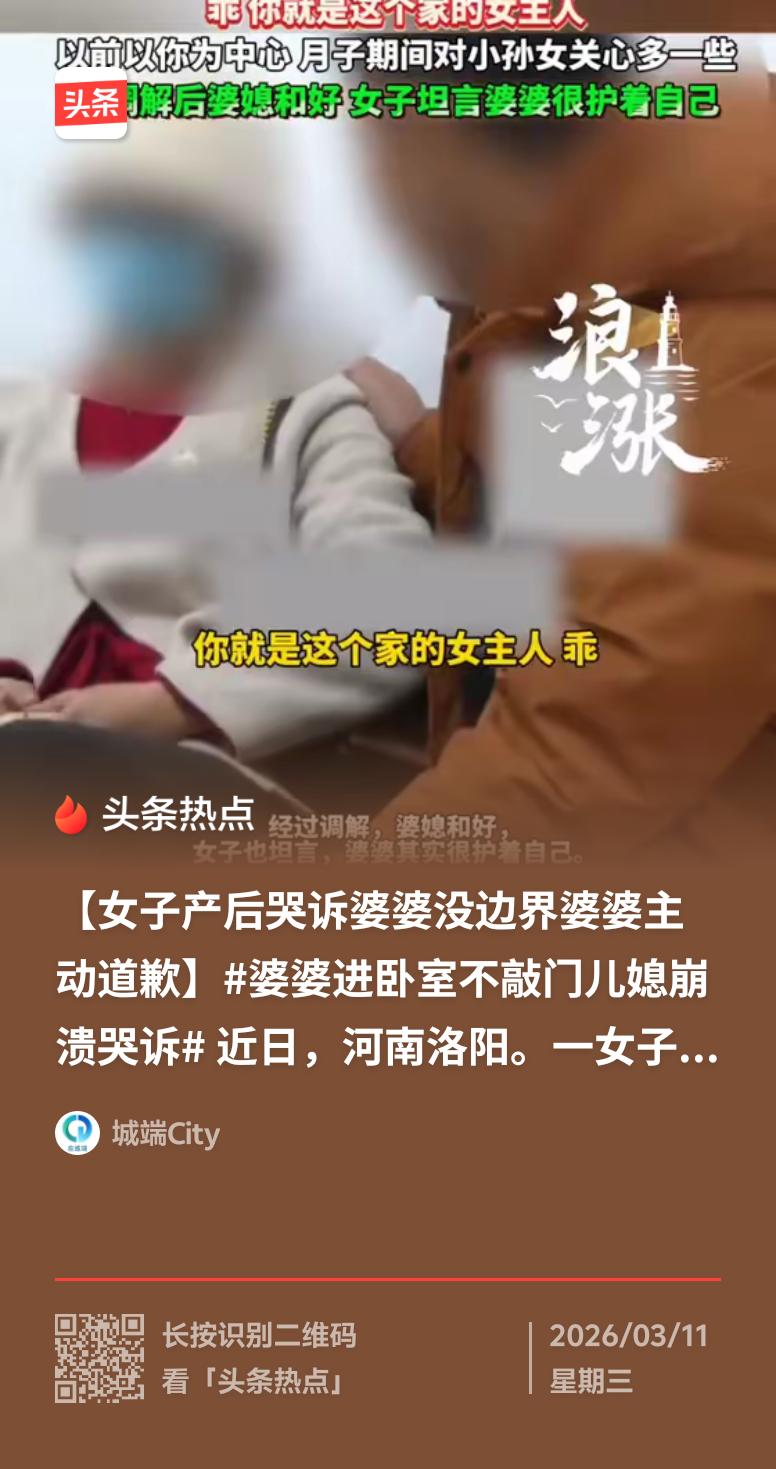 婆婆进卧室不敲门,真能把儿媳逼崩溃。有个儿媳和闺蜜视频哭诉,说边界感比亲情更重要,她眼睛哭得红肿,头发乱蓬蓬。结婚三年,婆婆从她怀孕后期就来同住,确实勤快,做饭、照顾孩子、打扫卫生都很在行,小区宝妈都羡慕。 可婆婆进卧室从不敲门,怀孕时就常不敲门进来送吃的,她虽被吓醒,也没说啥。还有个叫林晓的儿媳,和婆婆说了敲门的事,婆婆却觉得儿子房间自己能随便进,丈夫也让她包容。有次亲热时门被推开,她的婚姻都快被侵蚀了。唉,尊重边界感真的太重要了! 对婆婆的印象 婆媳人生感悟 婆婆的相处智慧 婆媳共处的智慧