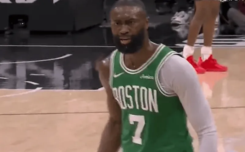 比赛第二节,凯尔特人球员杰伦-布朗被马刺球员斯蒂芬-卡斯尔推出界外,但裁判并未吹罚卡斯尔犯规,杰伦-布朗追着怒喷裁判,言辞激烈被2位裁判分别吹了了1次技犯,从而直接被驱逐出场。