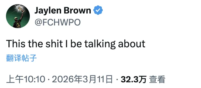 被罚出场后,杰伦-布朗更新推特写道:“这就是我一直说的那些破事!”