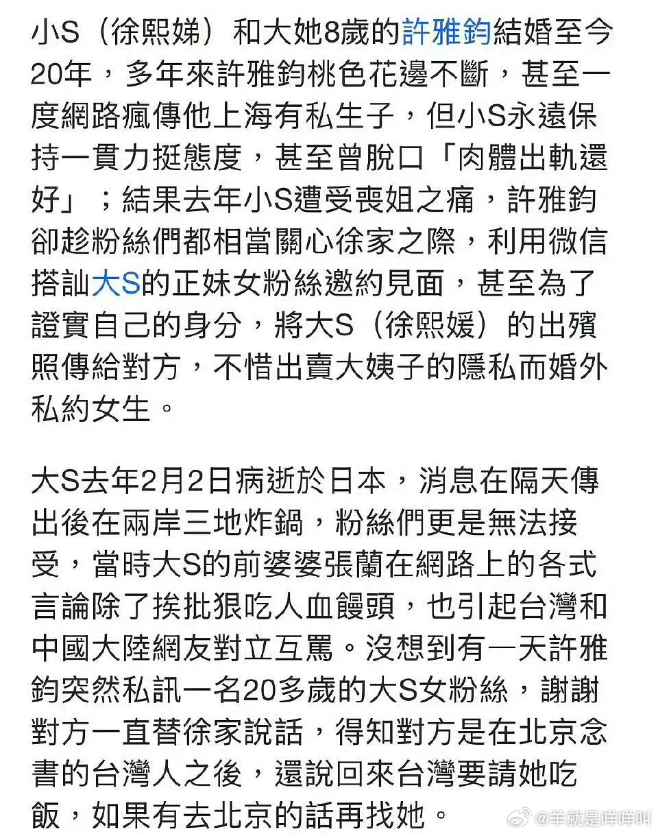 S妈终于在大S离世后提到了孩子,近日她去了大S的雕像前,在社交平台发文说自己苦不