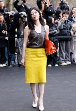 一直穿搭在线的陈妍希 这次出席米兰时装周FERRAGAMO2026秋冬时装秀的穿搭,看起来不是那么如意呀,你们觉得呢 首先,黄色的包臀半身裙给人一种突兀感 其次,橘色的手拿包,与黄色的包臀裙搭配起来,感觉不是很好看