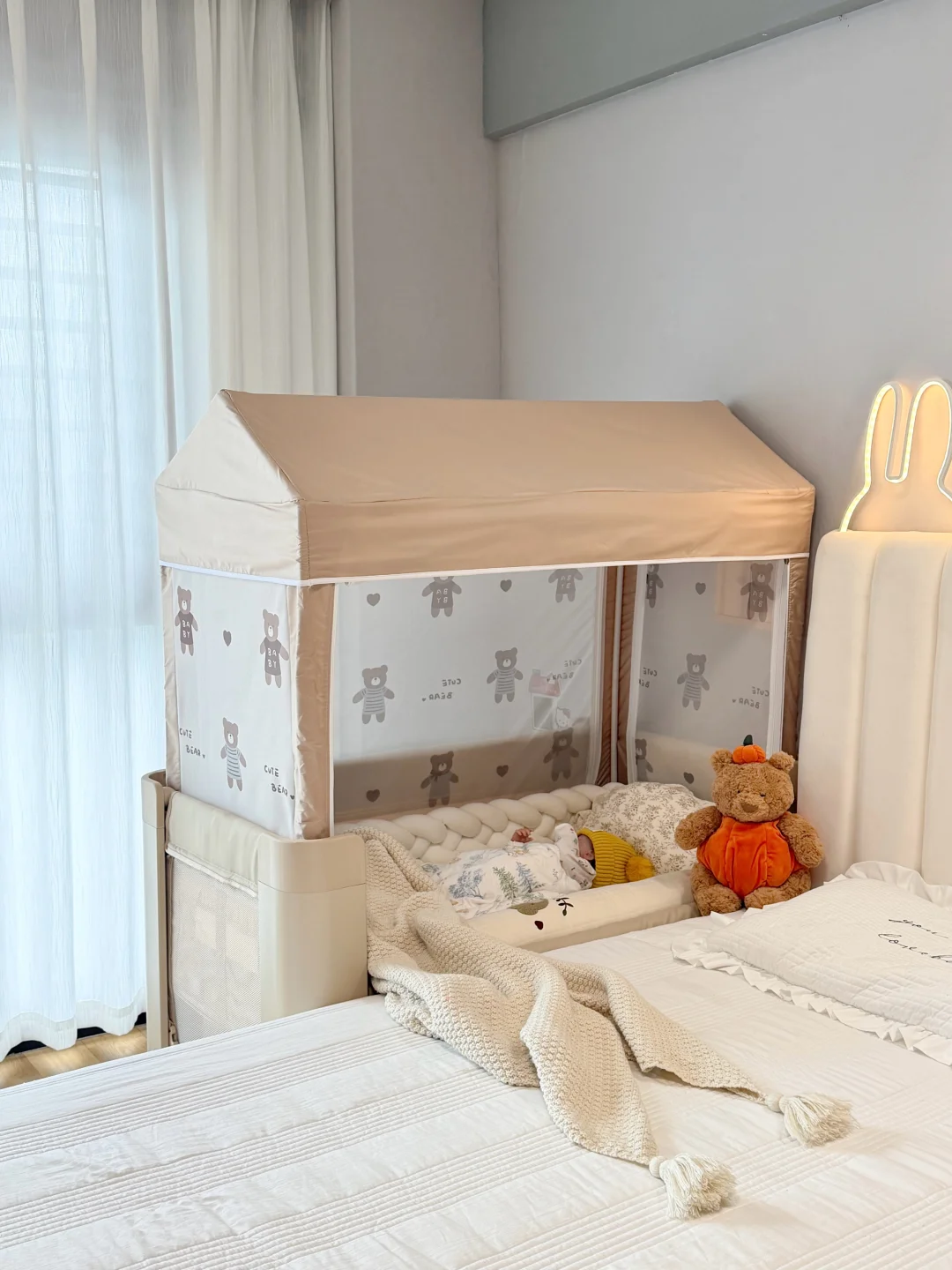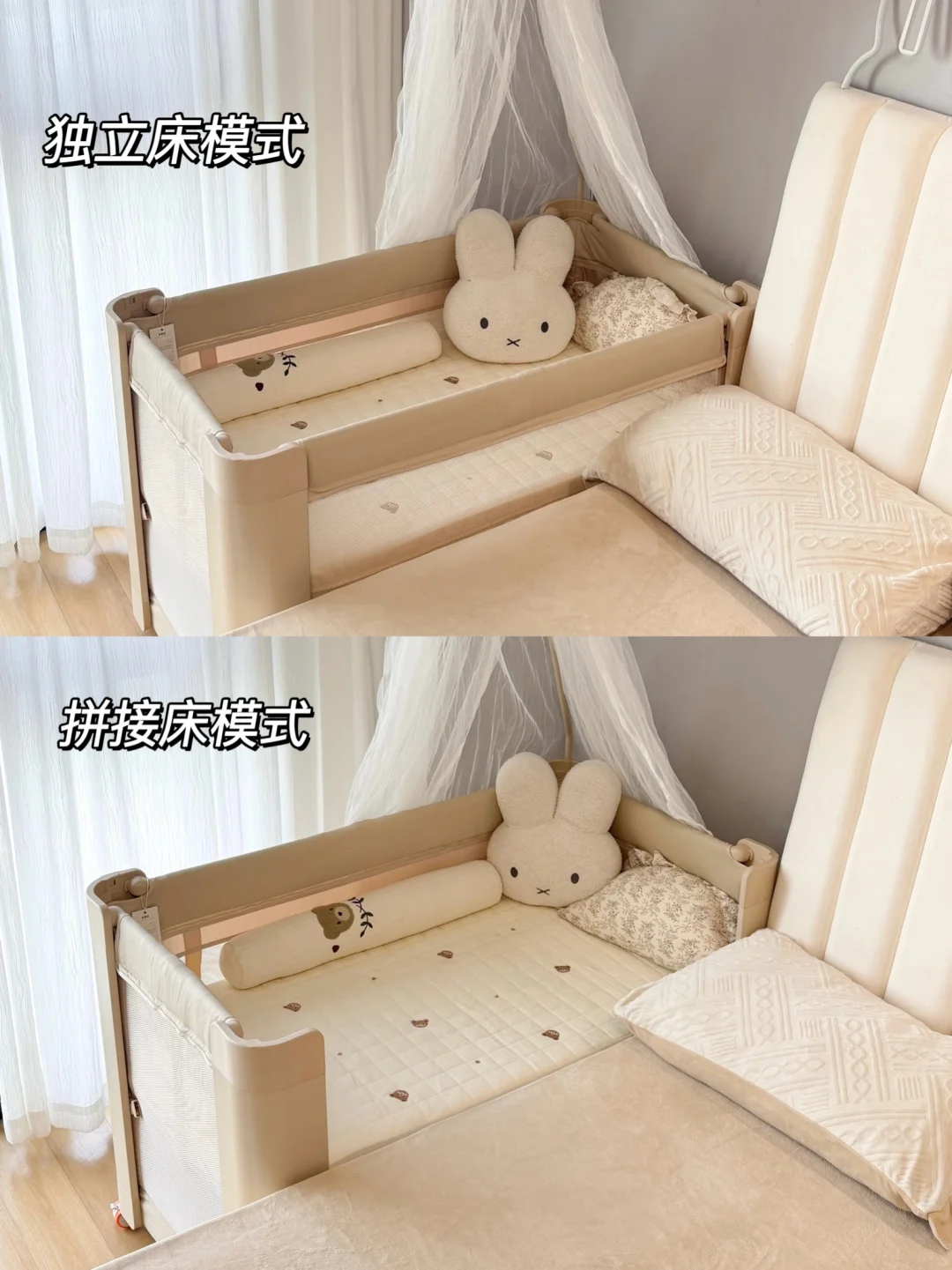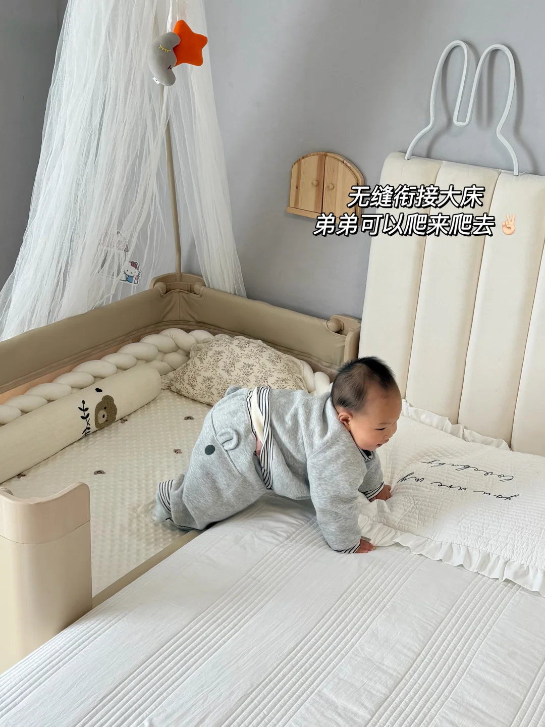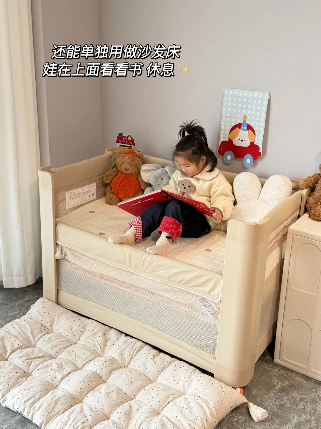 啊啊啊没想到[黄金薯R] 现在的婴儿床设计也太嘎嘎👏🏻 拼接床+围栏+游戏床+婴儿床+书桌+沙发床=它🐮 一床多用也不担心会闲置了[皱眉R] 是弟弟的小窝,也是姐姐的游戏床 自带万向轮,推来推去也hin方便 打开就能用也不需要散味 平时不用时收纳起来也一点不占地 真是一用一个不吱声,越用越香!