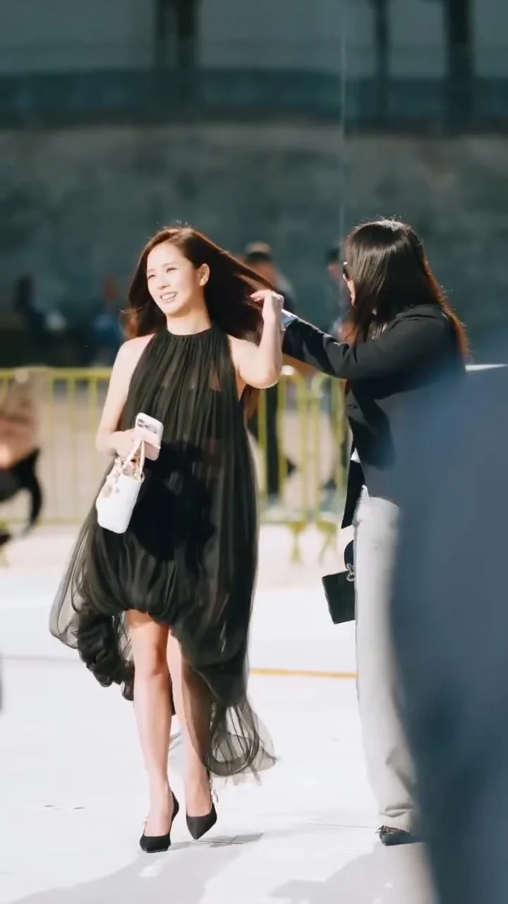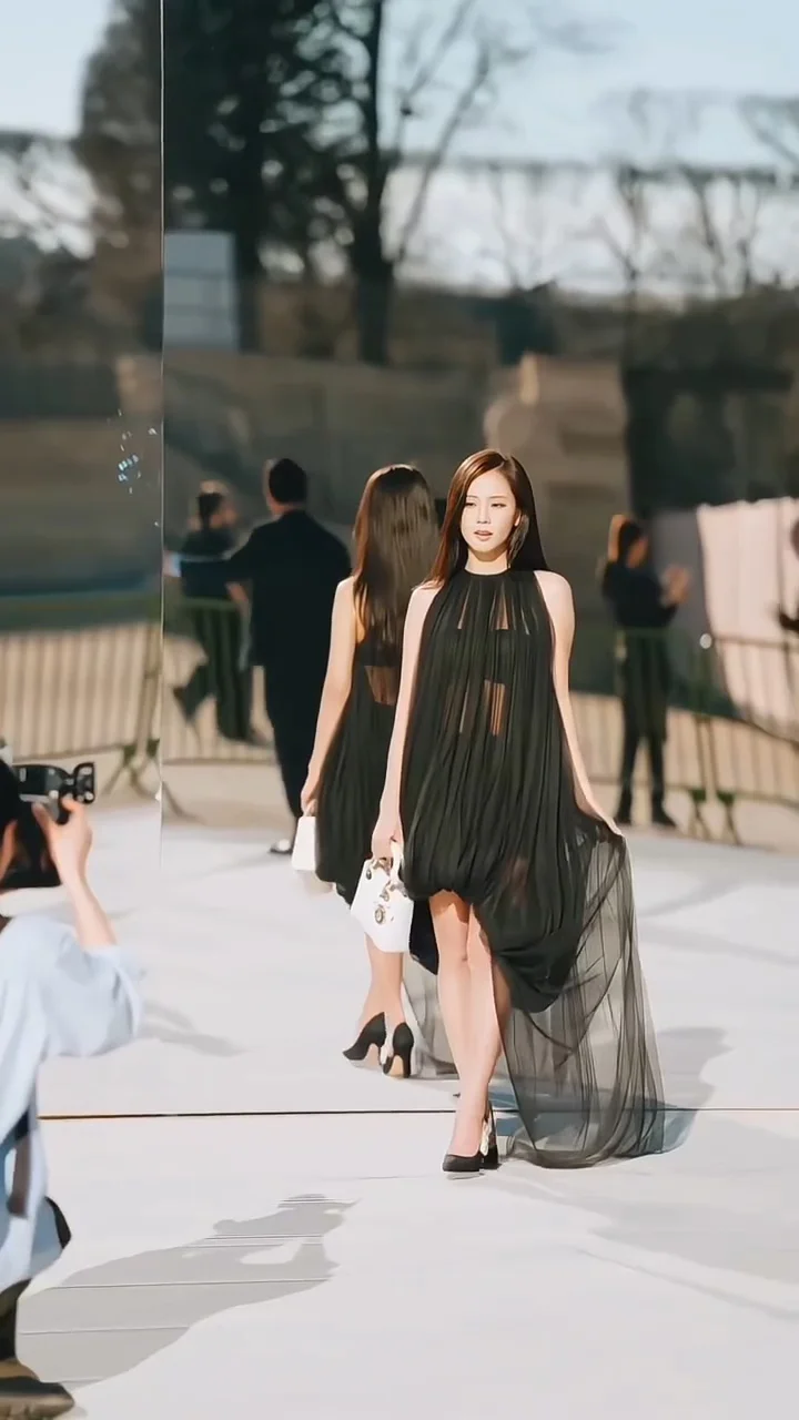 Jisoo Rose巴黎时装周看秀生图,小姐俩状态都很好! Jisoo黑色纱质长裙优雅美丽,Rose小礼服配金发复古明媚!