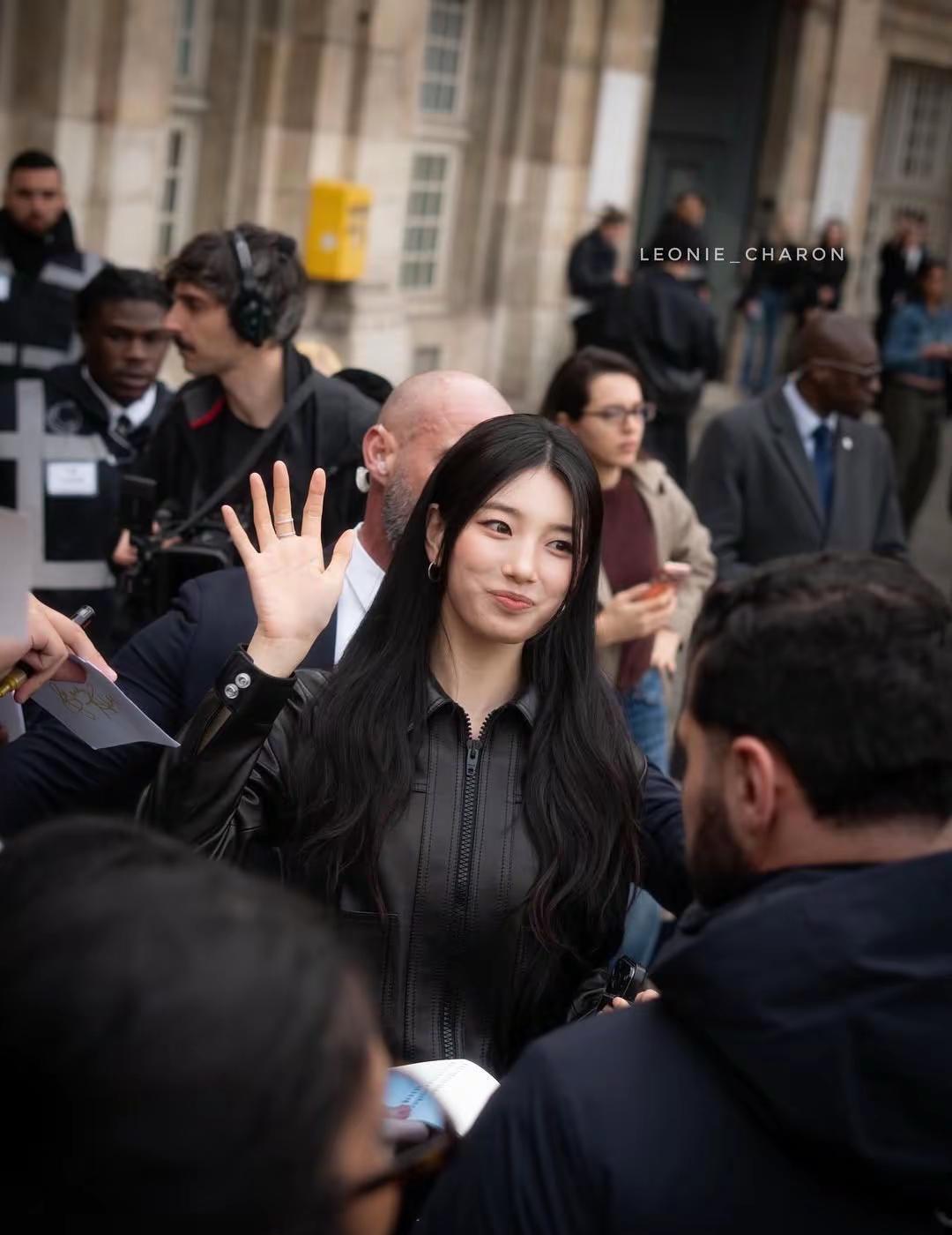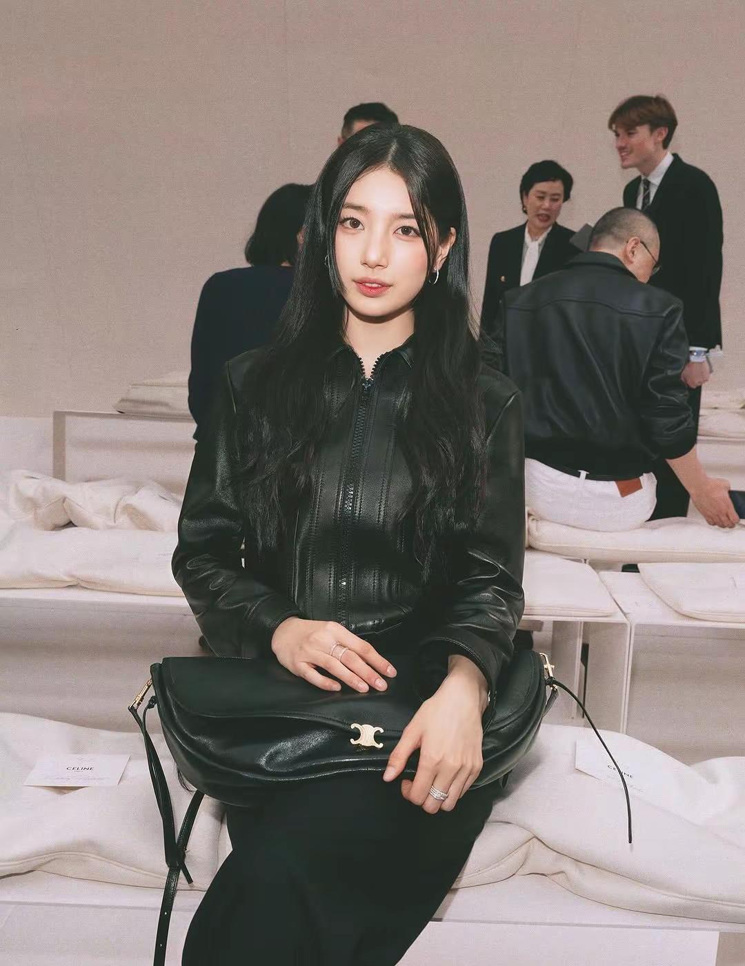 巴黎街头 裴秀智攥着Celine半月包 把半个时尚圈的镜头晃得发烫 全黑皮夹克压着宽幅腰带 利落得像刚撕开封条的Celine广告片 刘海扫过眼尾的弧度刚好卡着镜头焦段 你刷到的同框图里 她和王安宇孙千碰杯时 指尖还沾着秀场香槟的碎气泡 出道14年 路透刚出10分钟韩网热搜登顶 Getty直接收录17张高清生图 不是靠滤镜堆出来的流量神话 而是用14年磨出来的风格底气 不是惊鸿一瞥的红毯过客 而是跨圈破界的亚洲名片 岁月饶过的从来不是脸 是始终清醒的审美野心