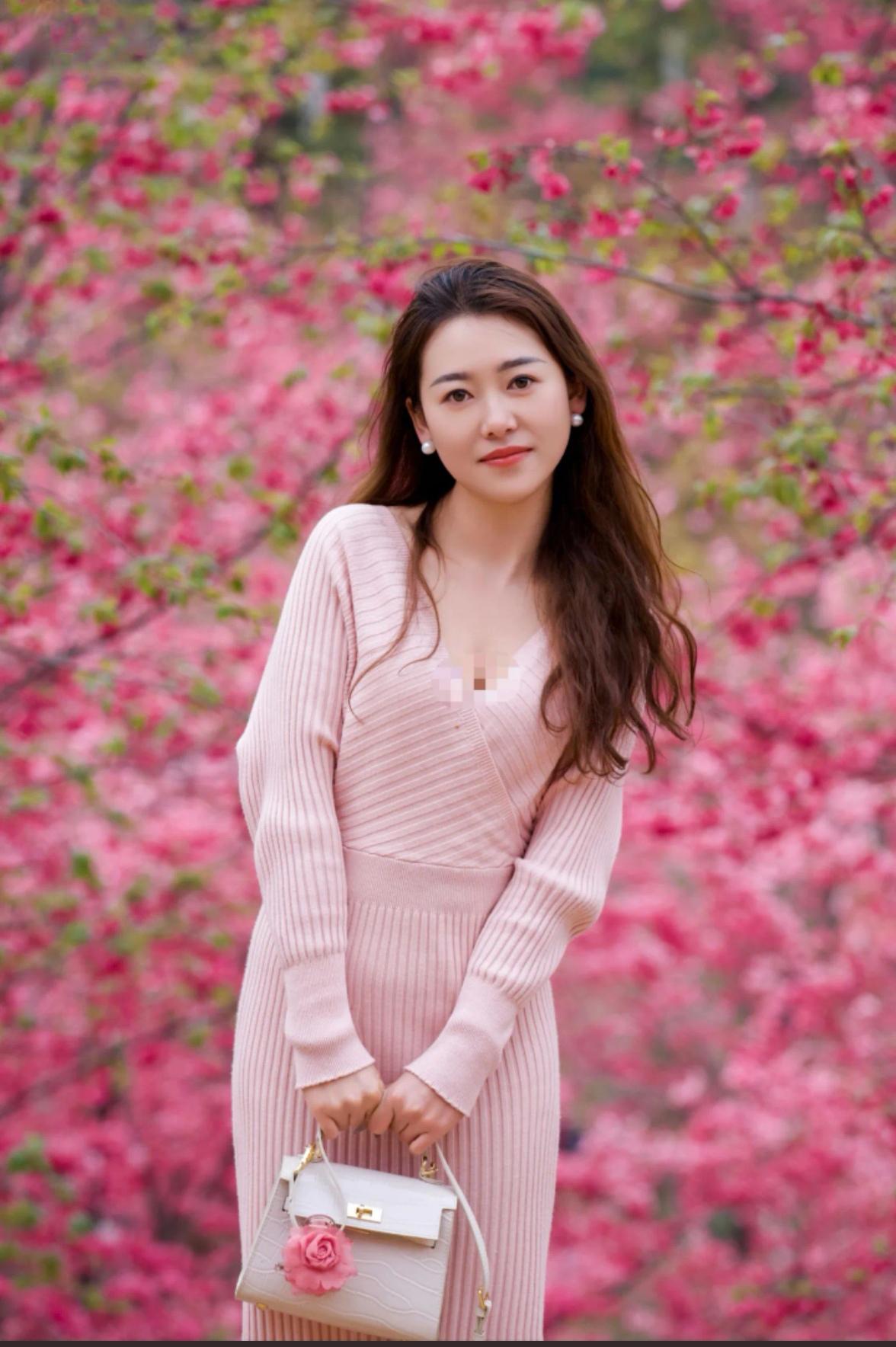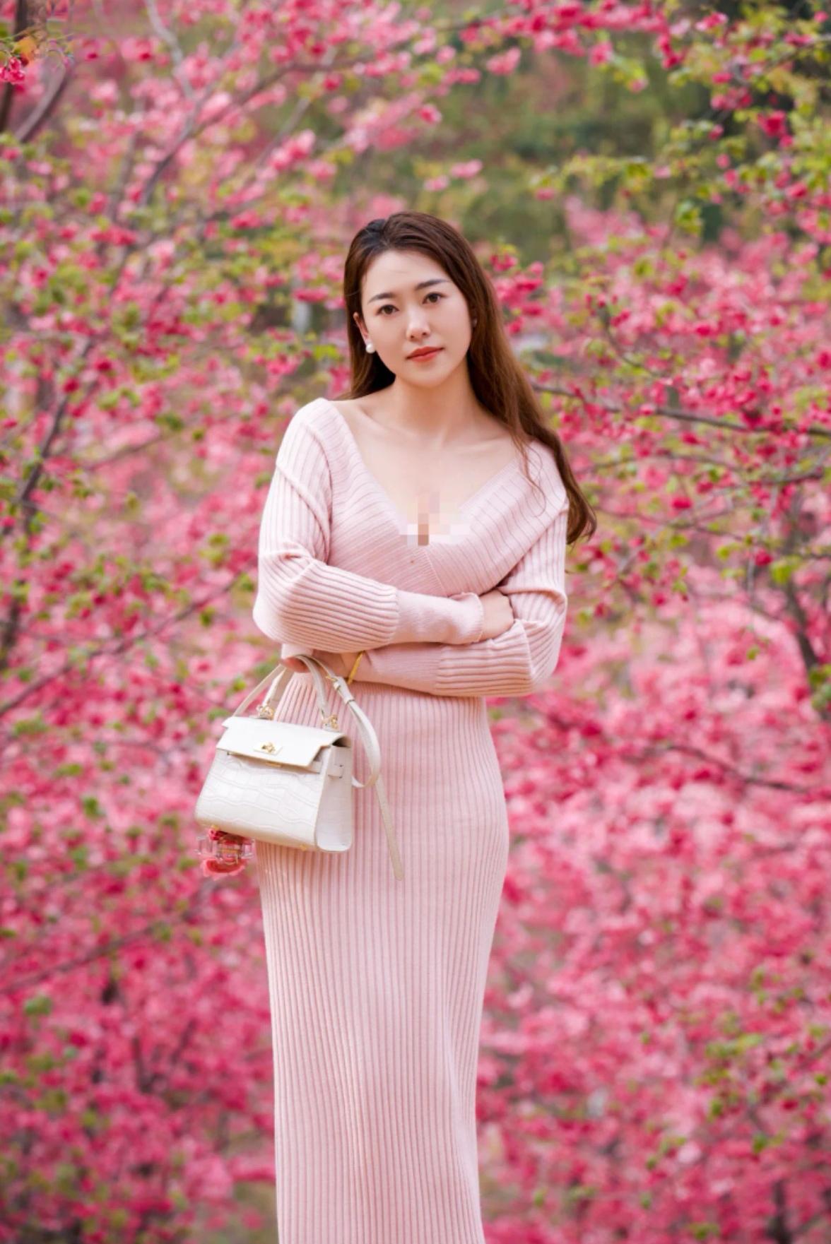 粉色花海中的优雅女神,春日穿搭指南🌸👗👜