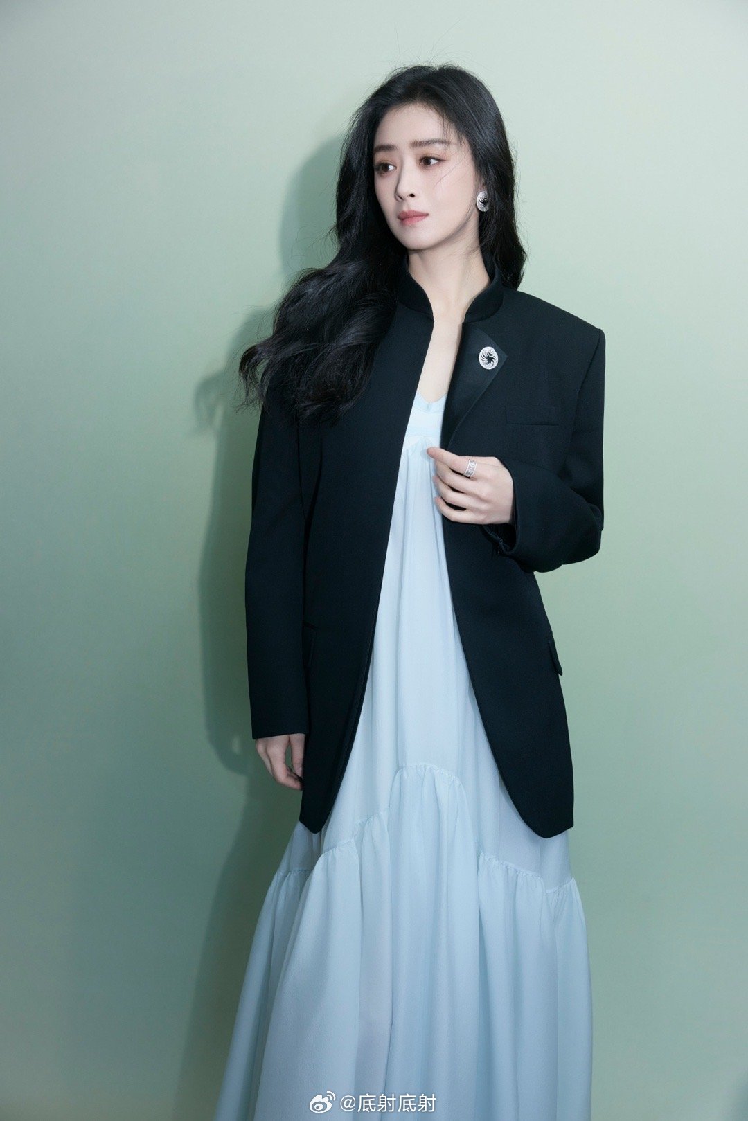 孟子义写真壁纸,银色抹胸裙,蝴蝶旖旎交织精致感满分。孟子义