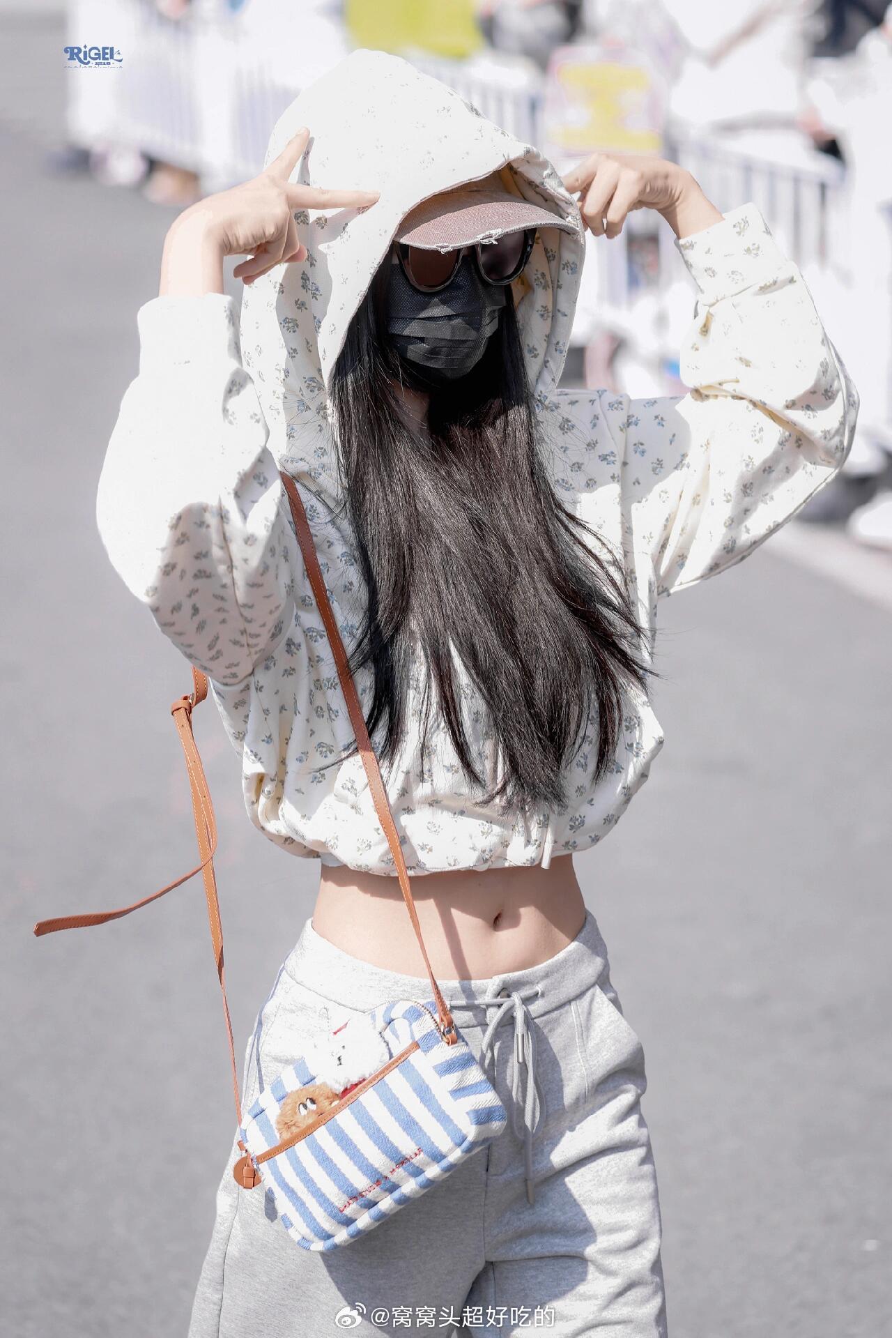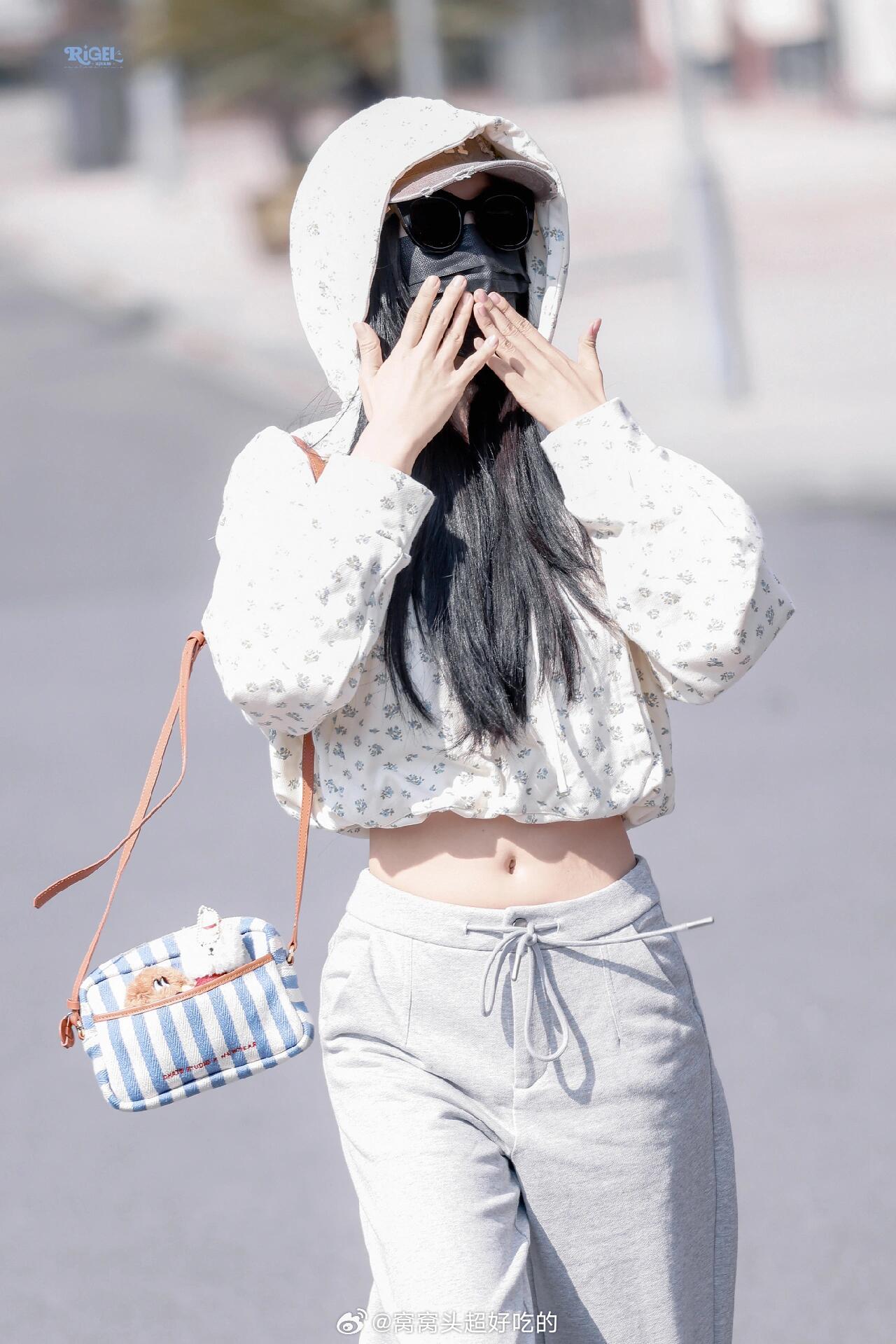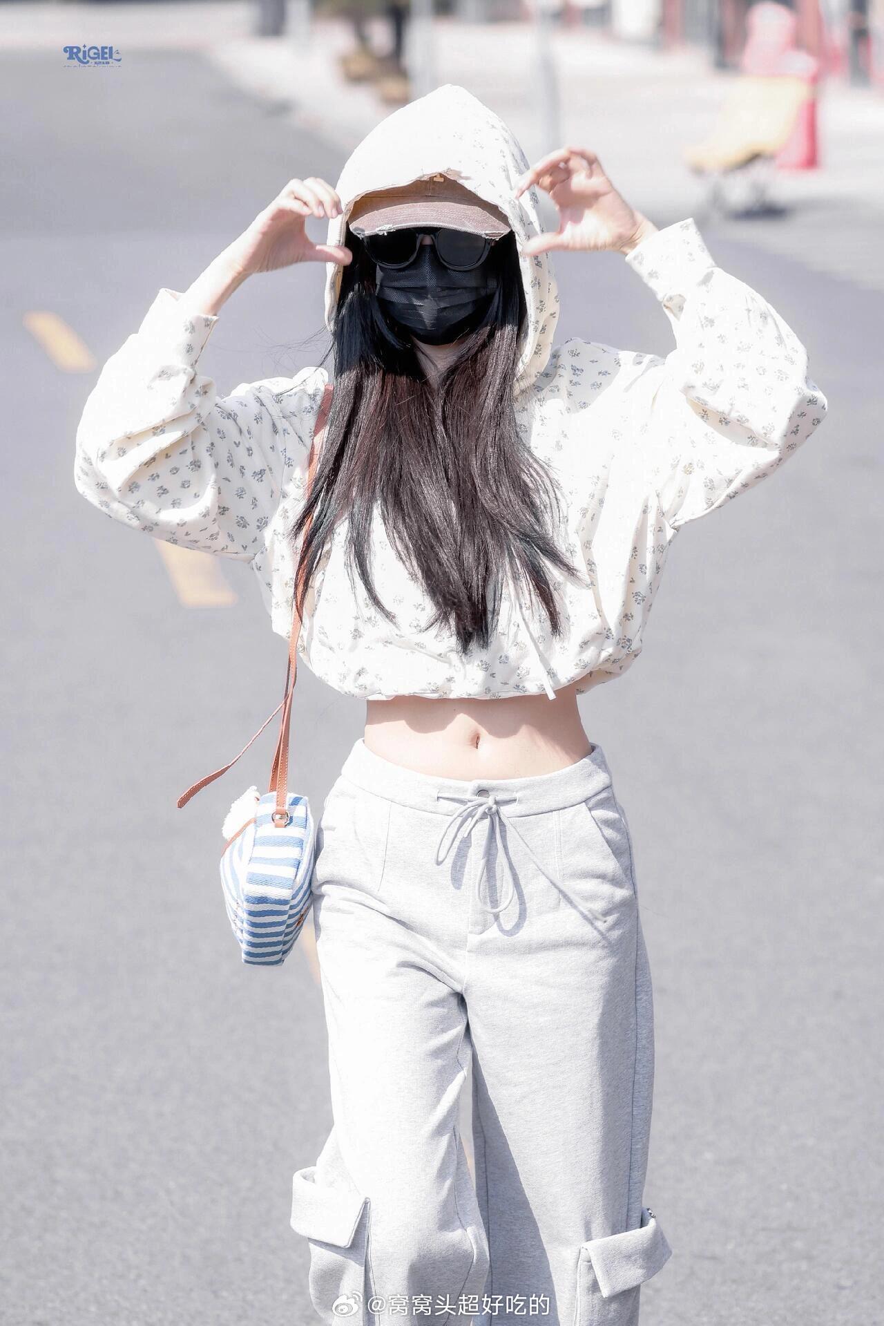 刘亦菲这条裤子挺养生,毕竟降温了肚脐眼必须护住啊