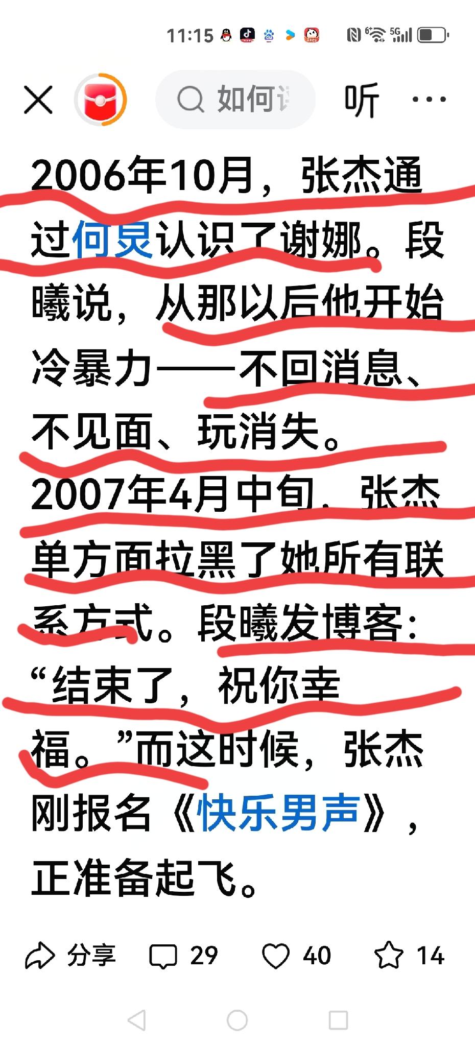 【娜是纯杰】 专一杰哥这次在劫难逃? 2004年(我型我秀) 杰和段认识 段卖房卖车,在夜场卖唱,支持杰三年 2006年杰通过何认识娜 从此对段:信息不回,面不见,玩失踪。 2007年杰单方面拉黑段 段在博客写到:一切结束,祝你幸福。 (快乐男生)传出重磅,段去后台,掌掴娜。 段不断辟谣,从来没去过,但越传越广 段丢了广告,丢了工作,男友母亲质问段:你还打人? 如今娜让薛道歉,段让杰道歉 杰回应:过往的感情,我一直心存尊重……我和娜谈时,我是单身。 如果段所言属实,那杰的专一破产。