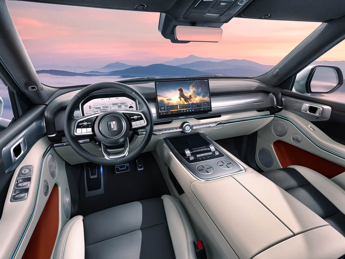 坦克700 Hi4-Z内饰官图发布...1:没有副驾大屏幕,环抱式设计2:后排座椅角度可调,肩部采用菱形格造型,看着质感还不错3:后排配备可翻折吸顶屏、天窗、二排隐私帘等4:估计得配有冰箱5:将搭载2.0T插混动力系统,WLTC工况下纯电续航里程为190km坦克汽车魏建军坦克700hi4-t