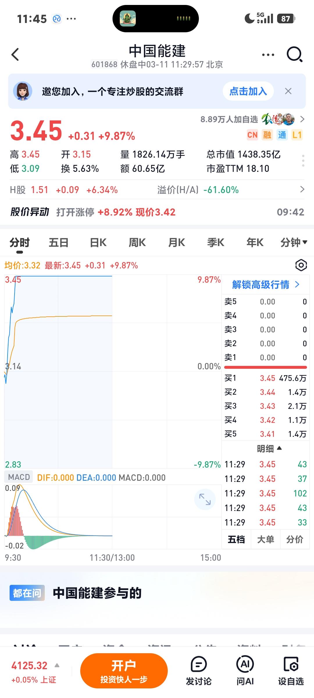 中国能建涨停 昨天涨停后打开了,今天坚决的出货了,这回不打开了[