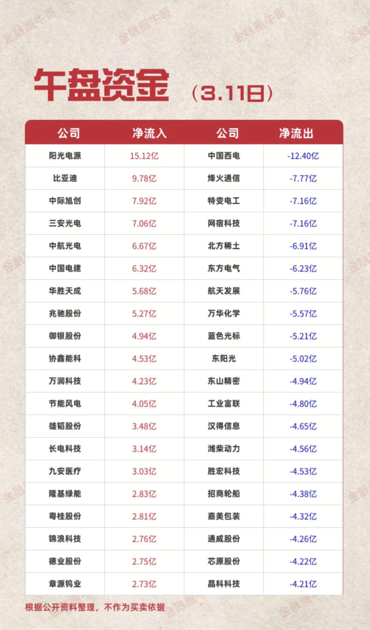 3.11周三 主力大资金 抢筹出逃个股榜! 资金抢筹: 通讯设备、蓝宝石、钠离子电池、3D玻璃、CPO概念、固态电池、刀片电池等。 资金出逃: 航海装备、页岩气、石油化工、天然气、影视院线、航运港口、饰品、资源等资金出逃