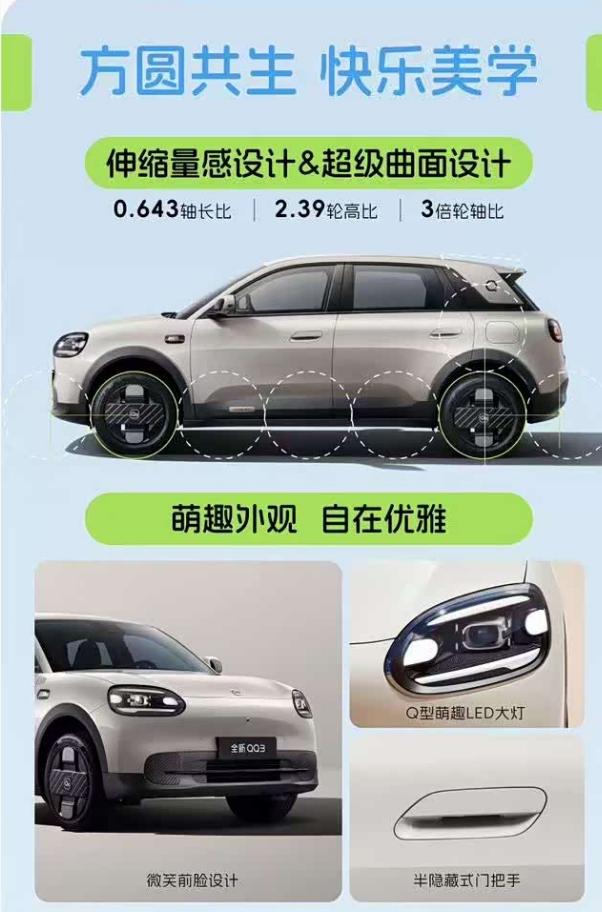 2026 奇瑞全新 QQ3 预售正式开启,四款配置、两种续航,全系皆高配,还有6宠超值权益。外观长的挺萌,有六款车漆、两款内饰配色可选。 车内储物空间也不少,还有70L的前备箱。12.3英寸悬浮中控屏+AR-HUD抬显、全场景自动泊车、高速NOA,这小家伙也都有!【来自懂车帝车友圈】