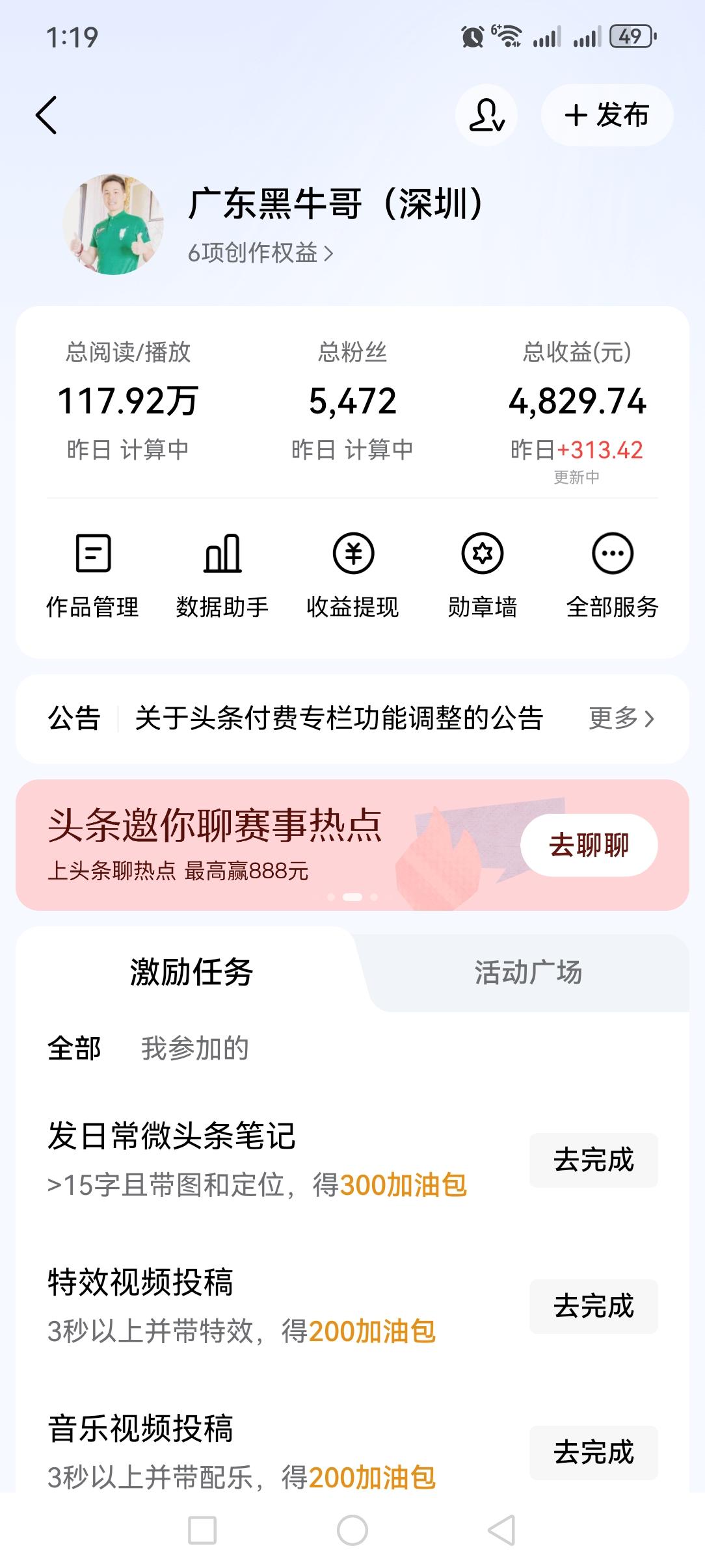 【90天破局:新号的成长与感恩】 奋斗90天,我的头条新号昨日收益突破5166元,阅读量129万+、粉丝近6000,每一步都浸着汗水与坚持。曾有人质疑“新号难出头”,但我不惧否定,用正确方法+全力拼搏验证商业逻辑——当别人写7年、3年还在为日入几块挣扎时,我用3个月让努力开花。 感谢今日头条平台,给我重燃活力的舞台,让“坚持”有了具象的回报。风风雨雨里,我学会了把阻力变动力,把质疑当燃料。这不仅是收入的揭榜,更是成长的勋章:只要找对方向、死磕执行,再小的起步也能闯出光亮!未来我会继续深耕,用更多优质内容回馈支持我的人,也证明“热爱+方法+坚持,永远能破局”!