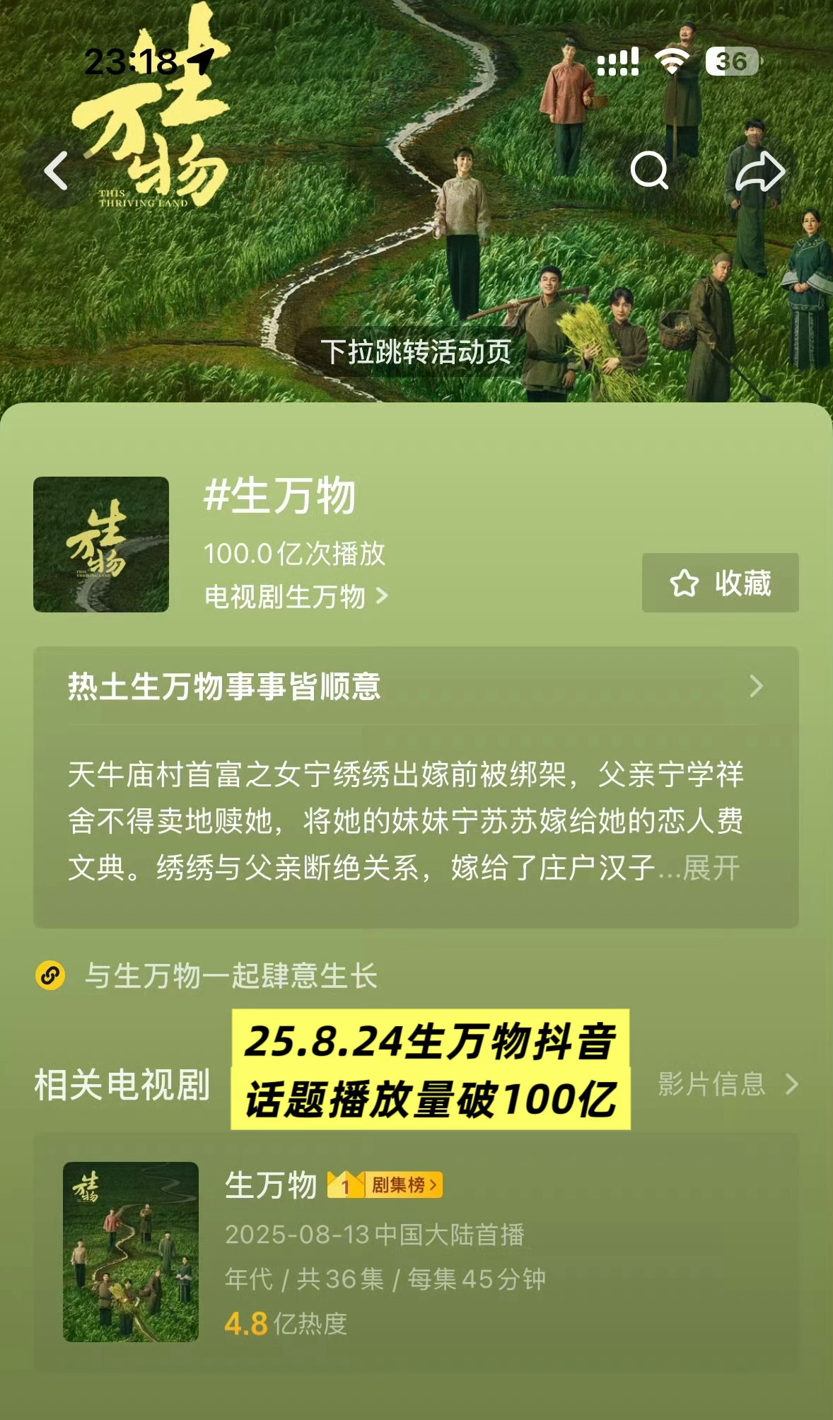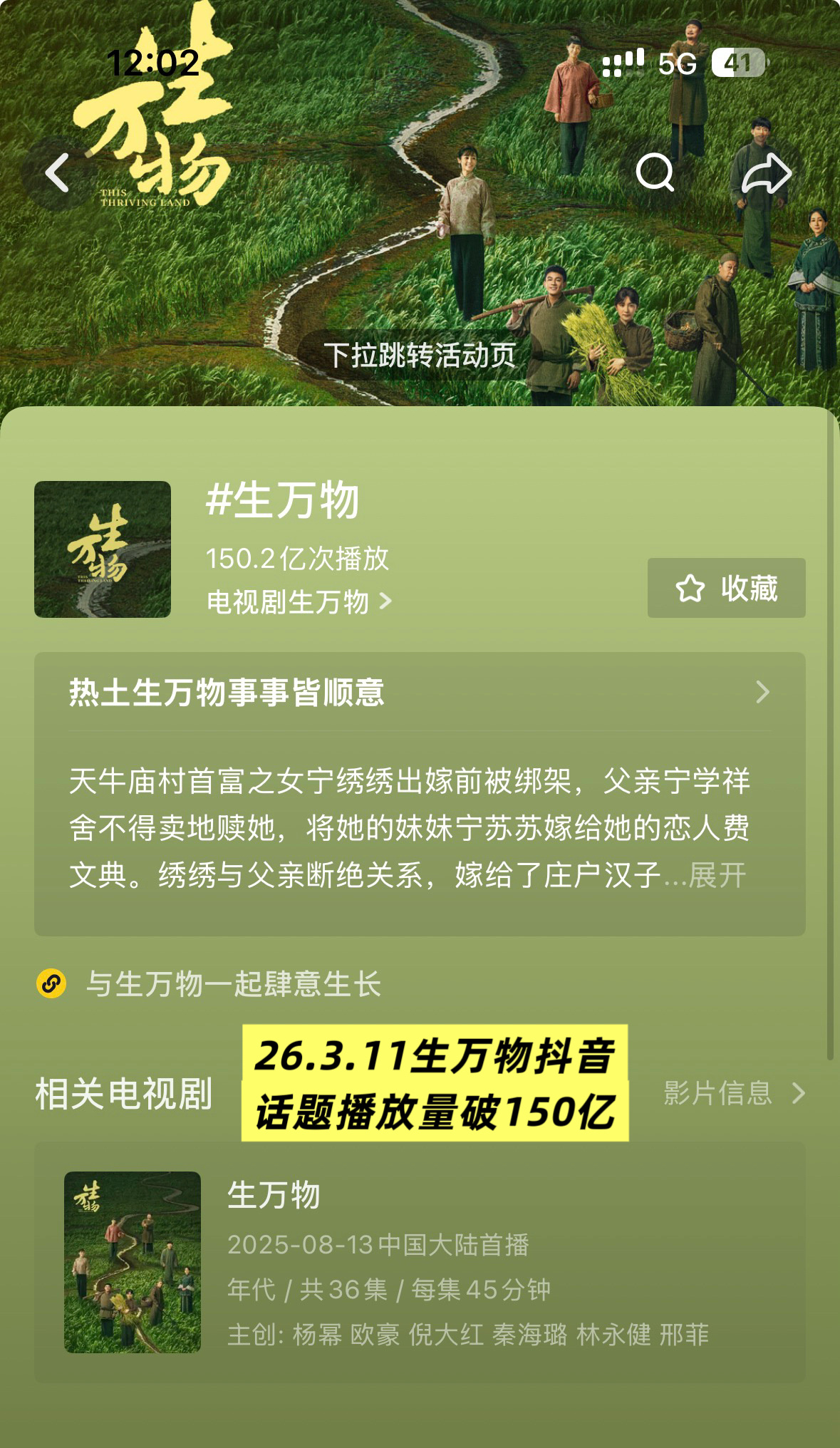 恭喜杨幂 生万物 抖话题播放量破150亿👏相比25.8.23爱奇艺完结的82.5亿增长了82%相比25.8.24央八完结的100亿增长了50%
