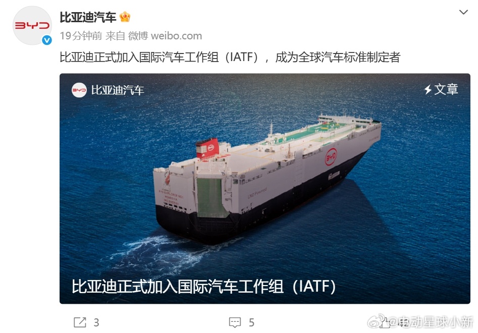 比亚迪正式加入国际汽车工作组(IATF),参与国际核心标准的制定
