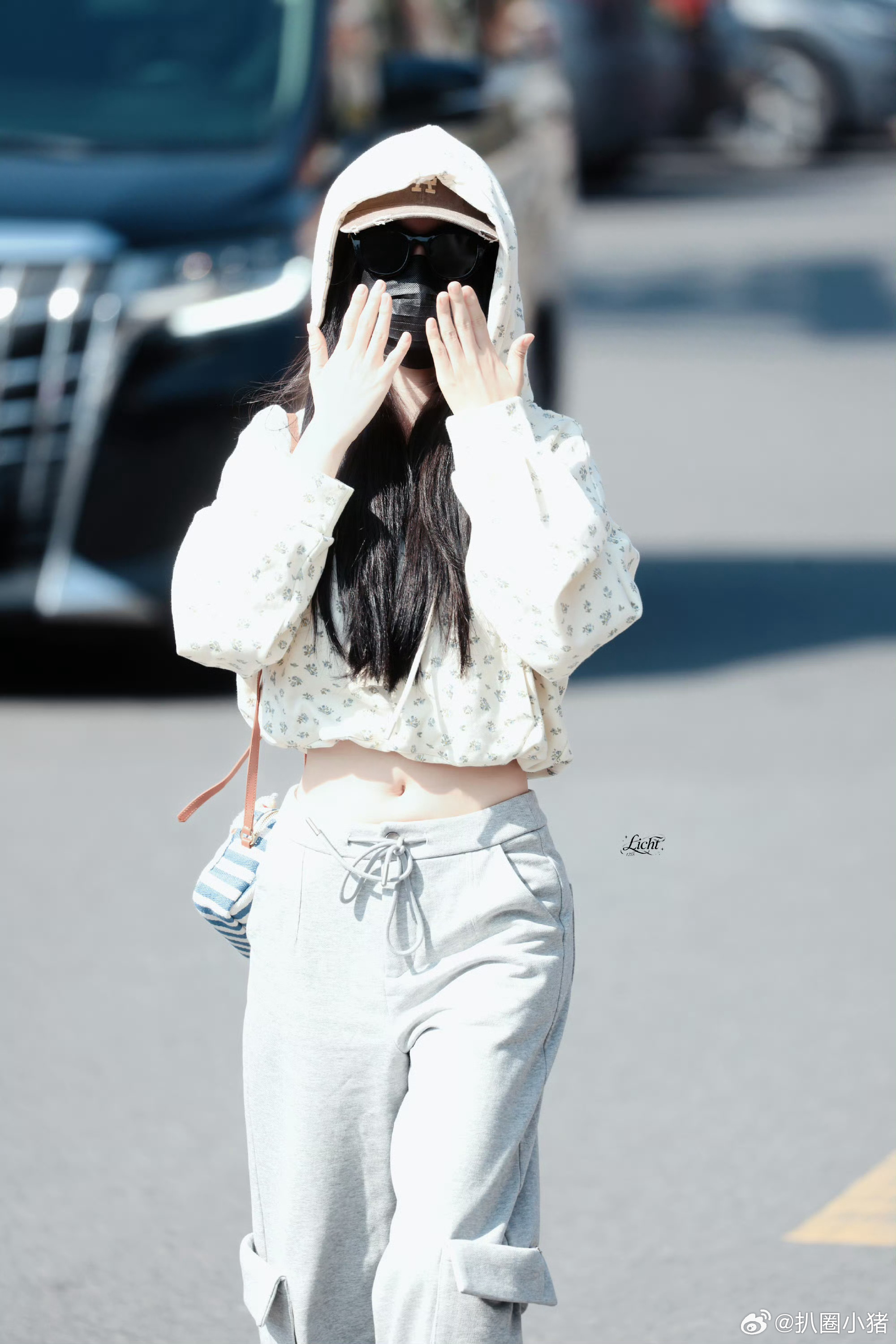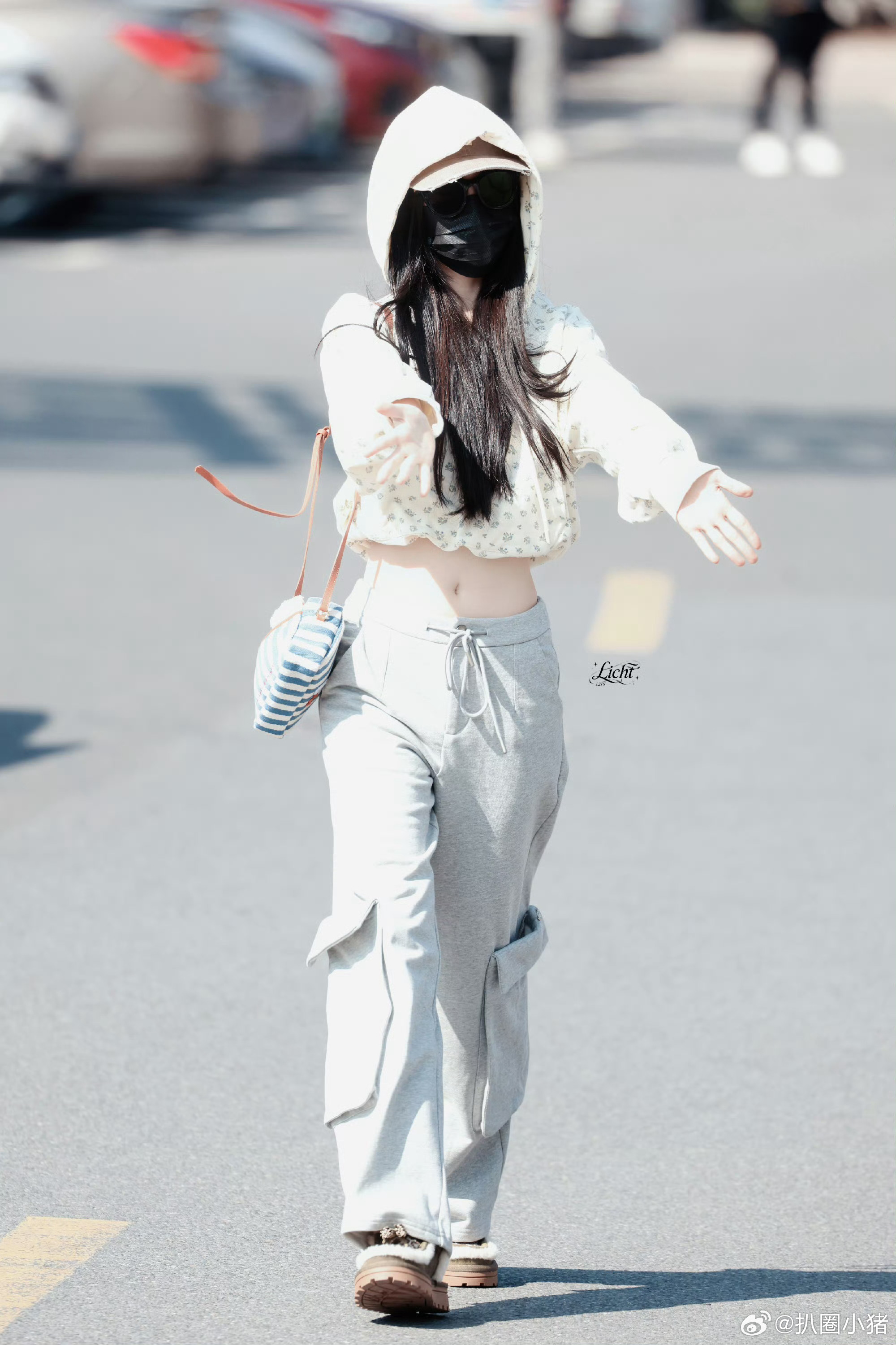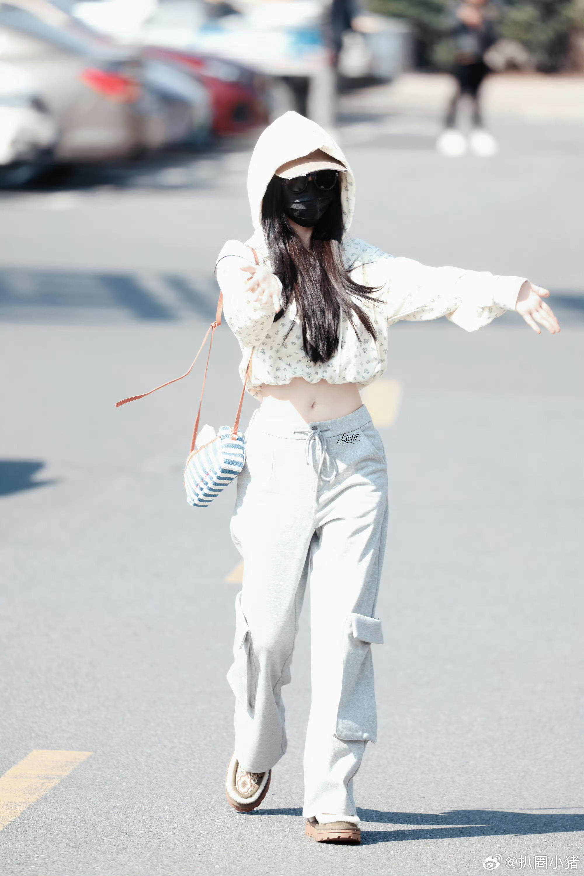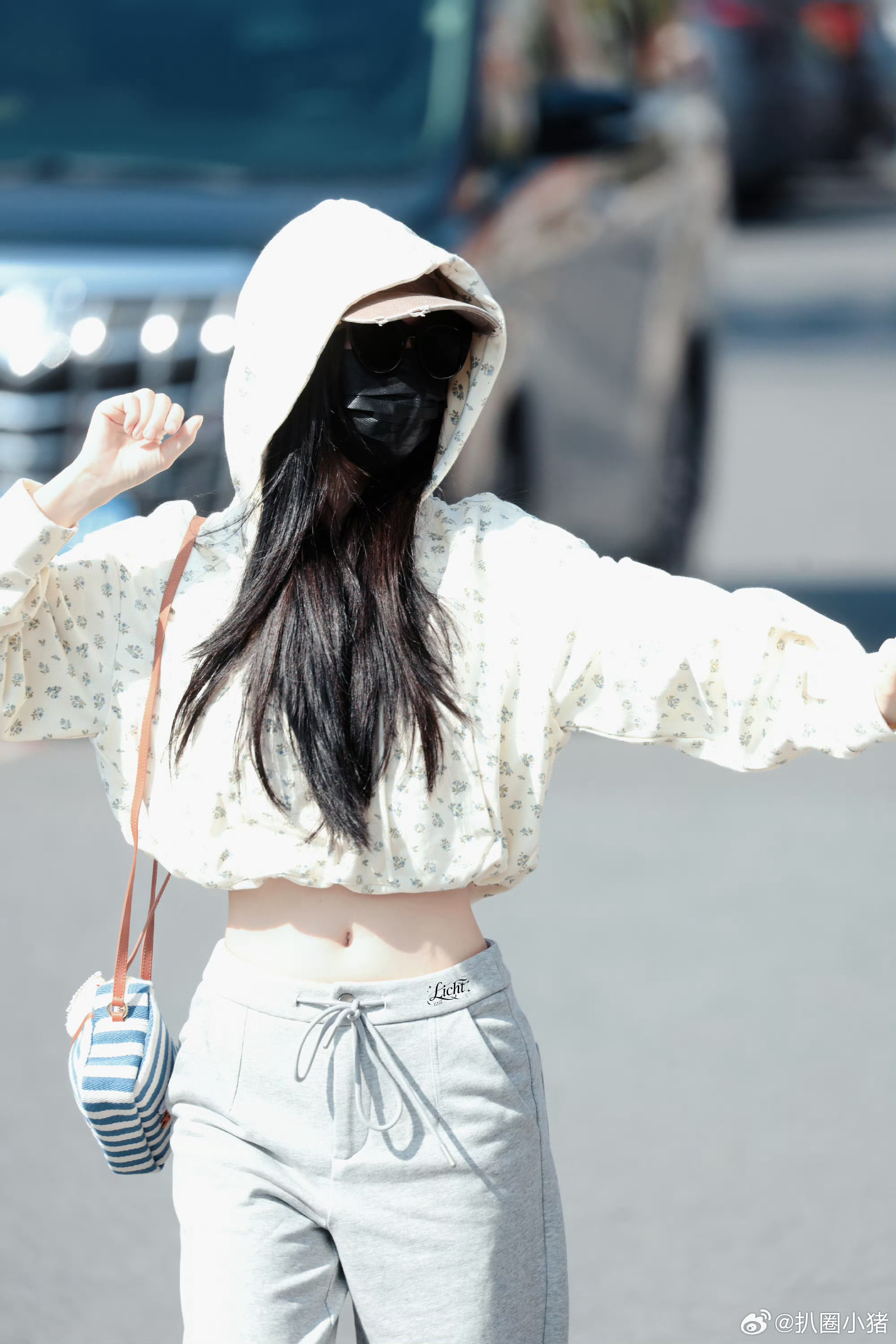 刘亦菲这条裤子挺养生,毕竟降温了肚脐眼必须护住啊