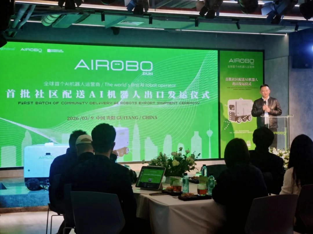3月9日,贵州本土机器人企业——融云创新科技(贵州)有限公司首批社区配送AI机器人出口发运仪式在贵阳高新区举行,智能配送机器人整装待发,即将远赴马来西亚、新加坡高端社区。仪式现场,融云创新与东南亚最大的AI和数字资产机构AJENDLESS签署1000台机器人战略合作与采购协议。