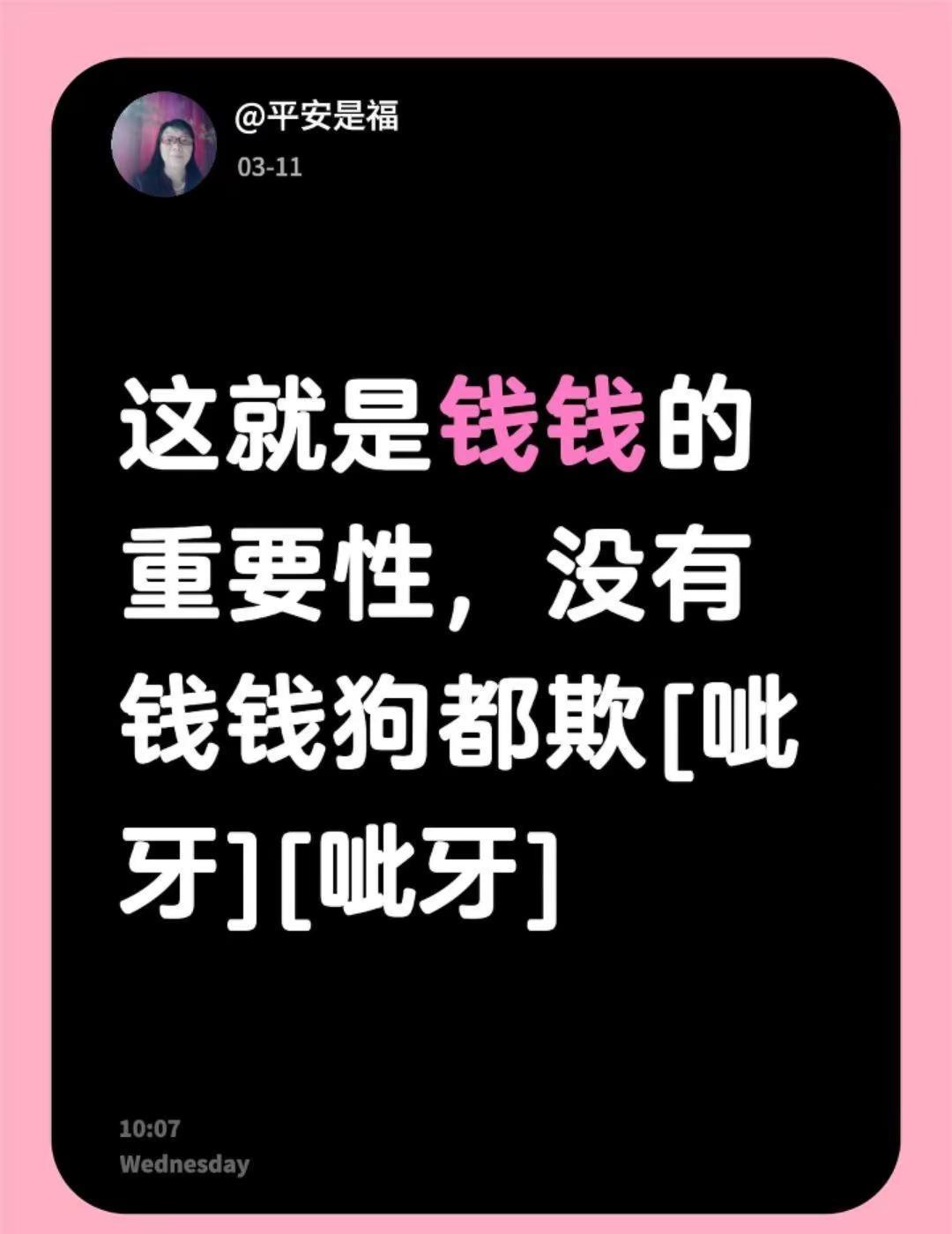 我评论了@笑林 的作品:这就是钱钱的重要性,没有钱钱狗都欺[呲牙][呲牙]钱不是万能的但没钱是万万不能的 !