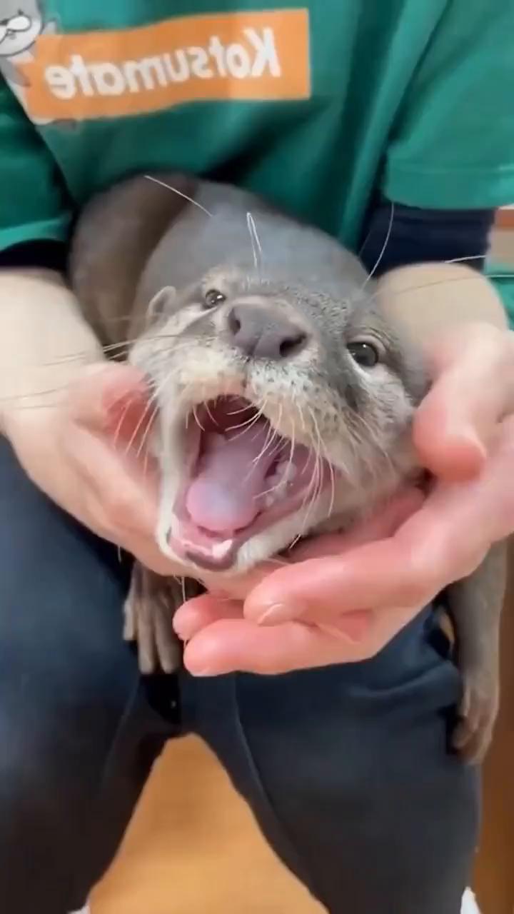 这个连打哈欠都要夹一下的东西其实是一只水獭。刚出生的水獭宝宝非常可爱,体型只有人类手掌这么大,而且它们的叫声清澈有力,有点像小鸡仔的叫声,胖嘟嘟的身体跑起来就像小时家养的小奶狗。 水獭是一种亲和力以及社交性非常强的动物,所以它非常粘人。别看它这副老实巴交的样子,其实它非常活泼爱动,可爱的外表下还藏着一颗二哈的心。而且水獭还是一个玩石头的高手,还玩的贼溜。其实之所以这样主要是为了保持身体灵活性以及缓解压力和消遣娱乐。 此外水獭是会认主人的,作为一个粘人精,水獭非常喜欢主人抚摸它身体。因为水獭各个关节部位分布大量神经末梢,每次抚摸都能给它带来愉悦感。此时它们非常享受,就跟猫咪和狗狗一样。所以国外很多人拿它当宠物养,因为它的陪伴能自愈很多不开心。